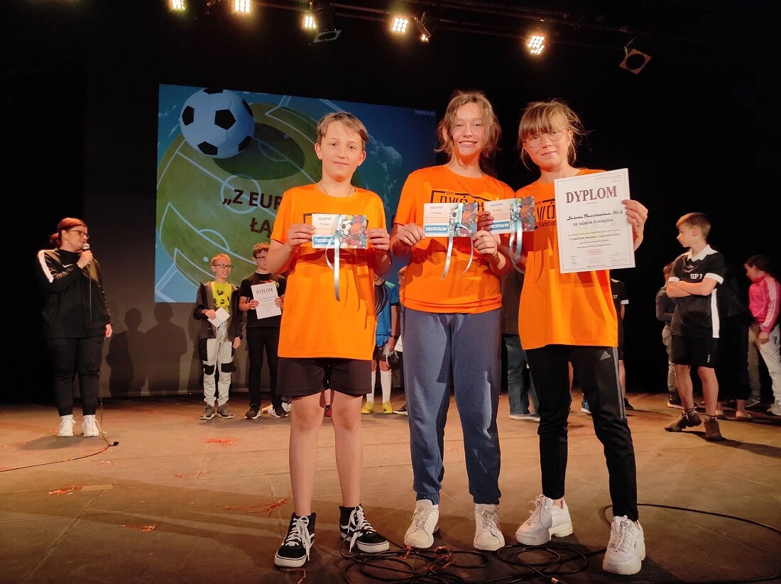 Szkołę Podstawową nr 2 reprezentowali uczniowie piątej klasy sportowej: Laura Kosno, Zuzanna Jarosz i Wiktor Lorenc. Gorąco dopingowali ich koledzy i koleżanki z klasy obecni na widowni. Uczestnicy konkursu zmagali się z pytaniami dotyczącymi słynnych zawodników i trenerów piłki nożnej, musieli wykazać się znajomością hymnów największych piłkarskich imprez oraz klubów, a w piłkarskim pokazie mody rozpoznać koszulki europejskich klubów. Dodatkowo czekały na nich językowe łamigłówki, a na zakończenie zadanie sprawnościowe. Reprezentanci Szkoły Podstawowej nr 2 spisali się świetnie, ostatecznie zajmując drugie miejsce i ulegając jedynie gospodarzom konkursu, reprezentantom Szkoły Podstawowej nr 1.