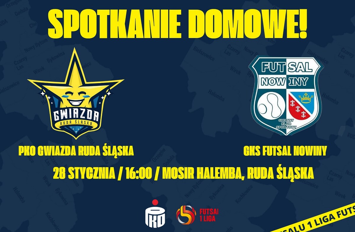 W niedzielę o godzinie 16:00 w hali MOSiR w Halembie odbędzie się ekscytujące spotkanie Polskiej Ligi Futsalu pomiędzy liderem tabeli, PKO Gwiazda Ruda Śląska, a drużyną GKS Futsal Nowiny. Rudzianie wciąż utrzymują się na szczycie tabeli i są uważani za faworytów tego pojedynku.