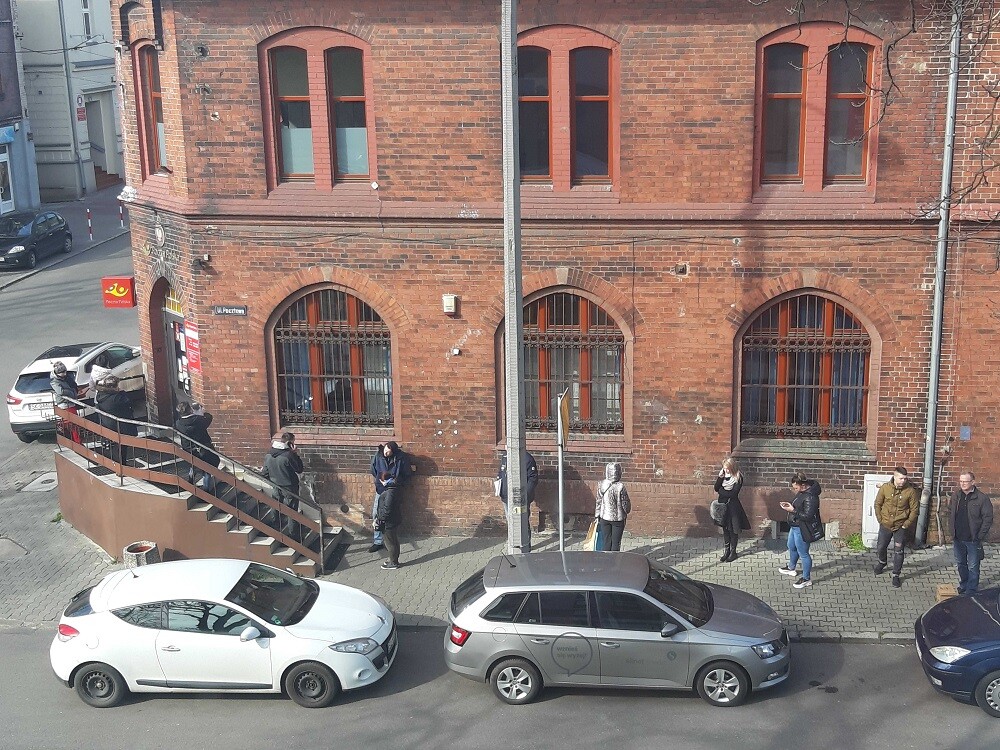 Mając na uwadze bezpieczeństwo klientów i pracowników w placówkach zostały już wprowadzone tzw. STREFY OCHRONNE w bezpośredniej obsłudze klienta. Osoby wchodzące do placówki proszone są o zachowanie odległości około 1,5 metra podczas oczekiwania na obsługę i pozostawanie za znajdującą się na podłodze taśmą także w trakcie obsługi. Bliżej do pracownika klienci powinni podchodzić jedynie w celu okazania dokumentów i innych niezbędnych czynności, na wyraźną prośbę pracownika Poczty - czytamy w komunikacie Poczty Polskiej.