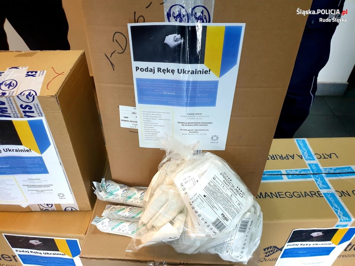 W obliczu tak strasznej tragedii, jaką jest wojna w Ukrainie, policjanci i pracownicy rudzkiej Policji włączyli się w pomoc dla walczących o wolność. Cel był jasny: zebrać jak największą ilość środków opatrunkowych i dezynfekcyjnych. Zebrane środki zostały przekazane rudzkiej fundacji Anioły w Piżamkach, której wolontariusze szyją apteczki dla walczących na Ukrainie.