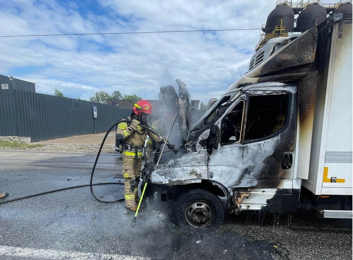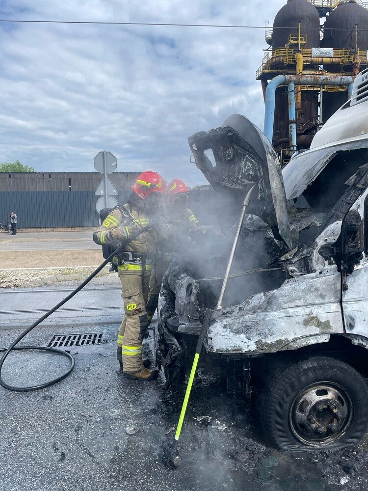 Dziś, około godziny 14:15, Komenda Miejska Państwowej Straży Pożarnej w Rudzie Śląskiej otrzymała zgłoszenie o pożarze samochodu dostawczego przy ul. Niedurnego, na wysokości Huty Pokój. Strażacy bardzo szybko opanowali płomienie, a obecnie trwa dogaszanie pojazdu.