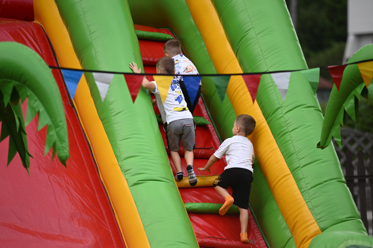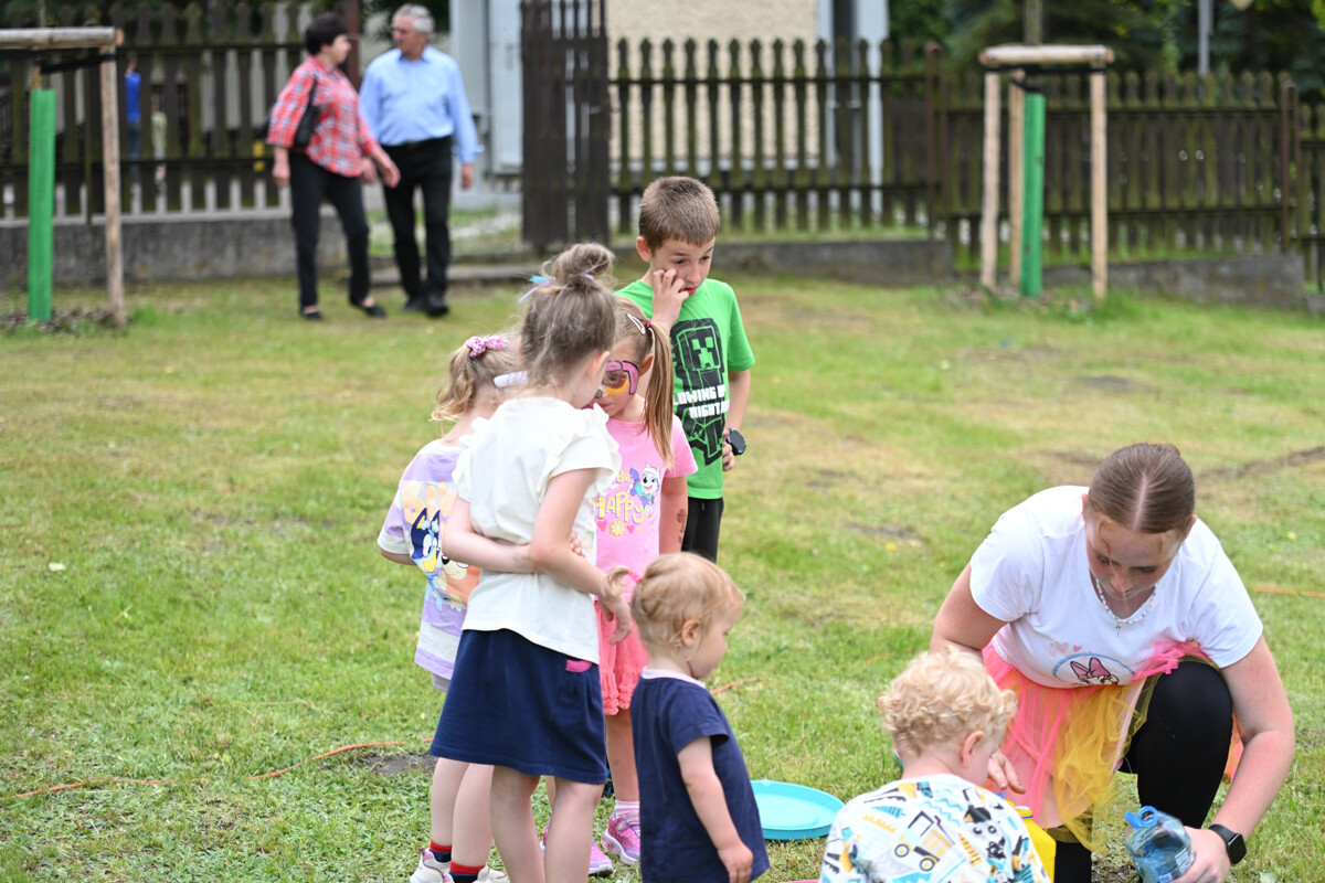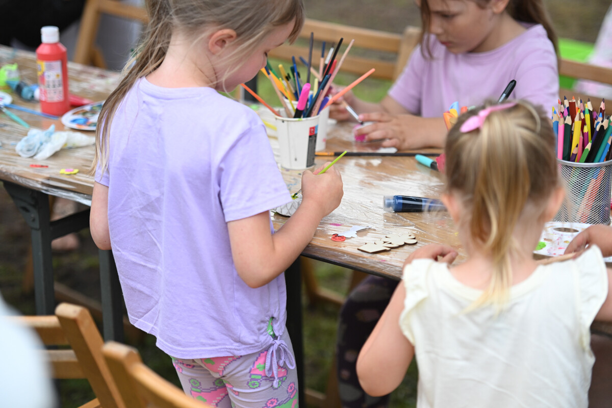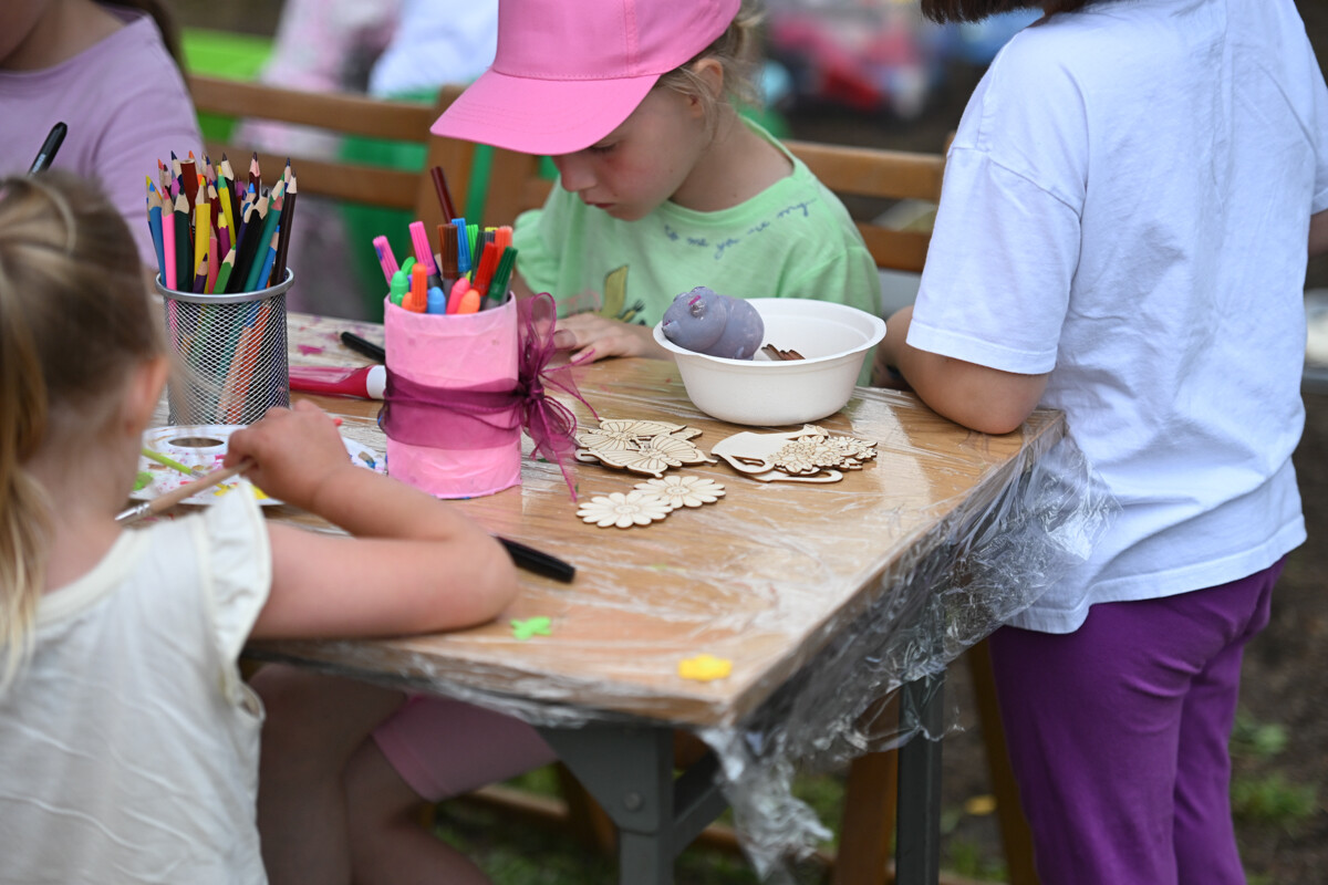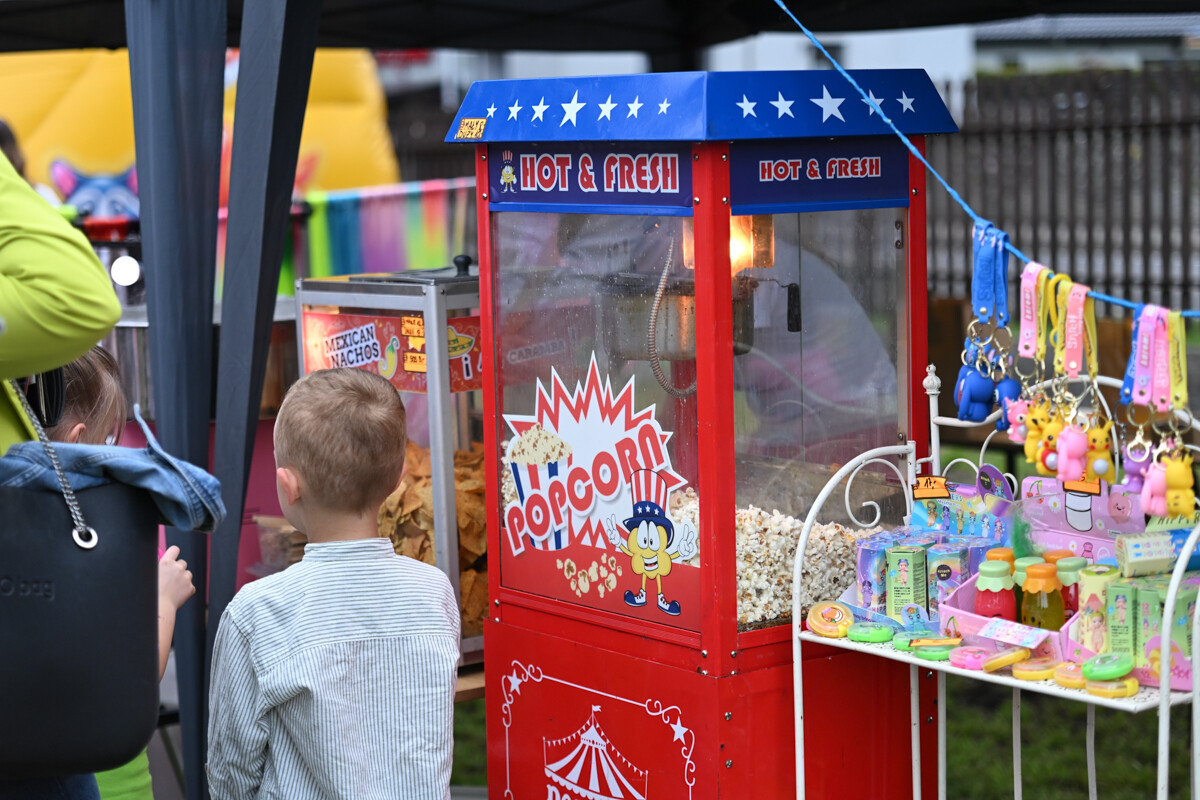 Na najmłodszych czekało mnóstwo atrakcji – od klasycznych dmuchanych zjeżdżalni, przez malowanie twarzy, strzelnicę, kącik muzyczny, po zawody Hobby Horse i spotkanie z... dinozaurem. Nie zabrakło też warsztatów z koralików, łowienia rybek, malowania odlewów, wożenia taczką i oczywiście – bańek mydlanych!