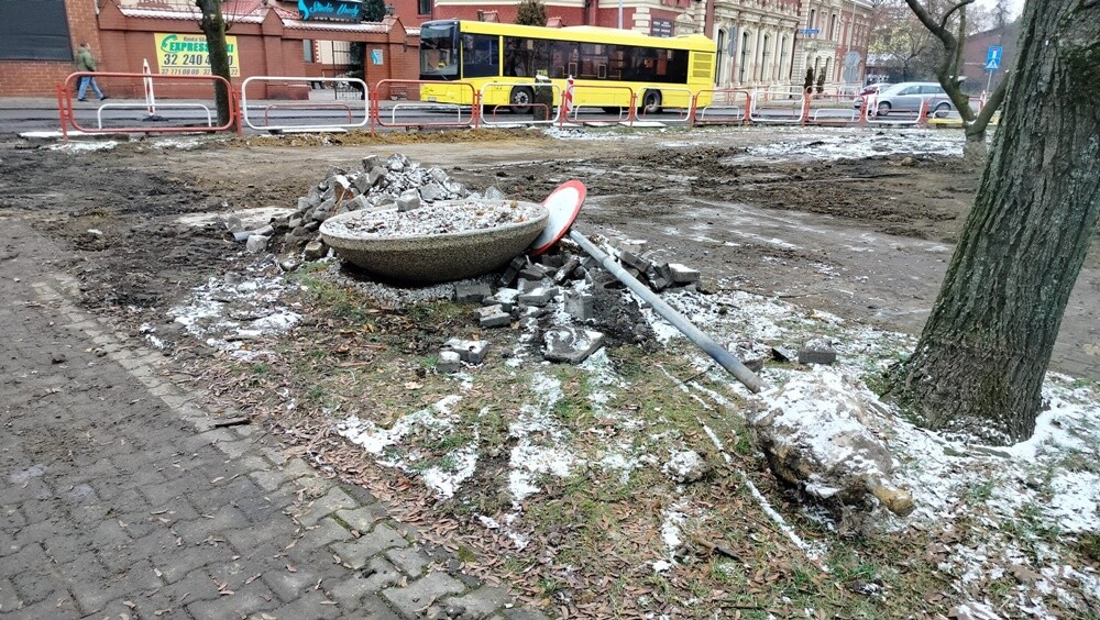 - Z tego, co pamiętam, to drzewa po tej stronie ulicy Piastowskiej, przed zjazdem do Biedronki patrząc od wiaduktu kolejowego, miały pozostać, natomiast dzisiaj wyglądają tak, jak na zdjęciach. Natomiast trawnik na placu Żwirki i Wigury stał się składowiskiem ziemi i materiałów budowlanych rozjeżdżanym dodatkowo przez ciężki sprzęt. Szczególnie przykrym widokiem jest zasypywana ziemią magnolia będąca co roku cudowną ozdobą tego terenu. Nie dosyć, że wykonawca zasypuje ją ziemią, to już ma uszkodzone gałęzie. Nie ma to nic wspólnego z dbałością o zieleń - napisał radny Janusz Żurek.
