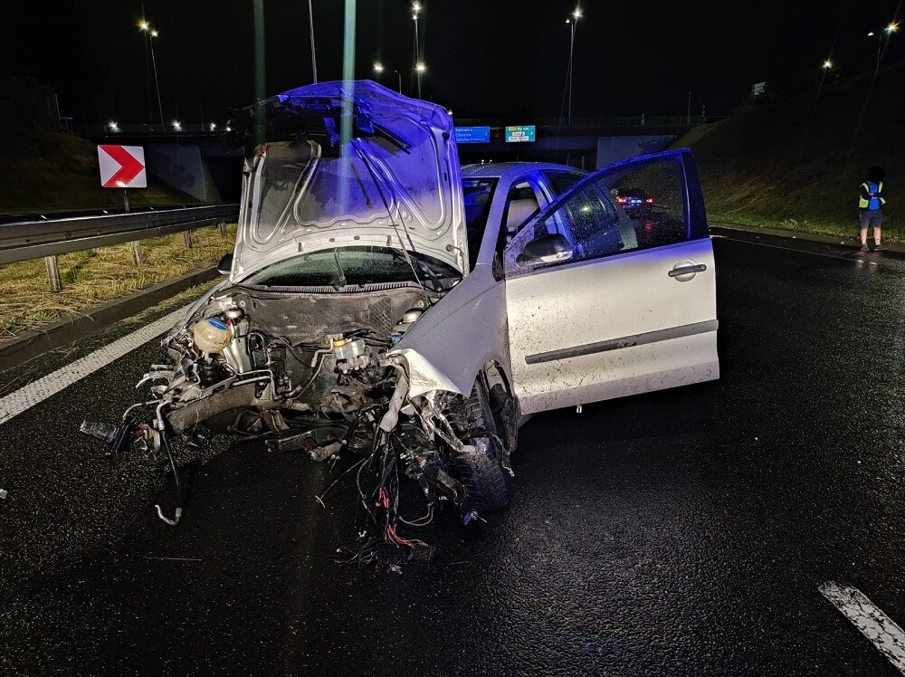 Do zdarzenia doszło około północy, 24 czerwca, na Drogowej Trasie Średnicowej. Samochód poruszał się środkowym pasem ruchu w kierunku Katowic. Na wysokości wiaduktu w Chebziu, kierowca stracił panowanie nad pojazdem i z impetem uderzył w bariery energochłonne, w wyniku czego z samochodu wypadł silnik. Na miejsce przybyły wszystkie służby.