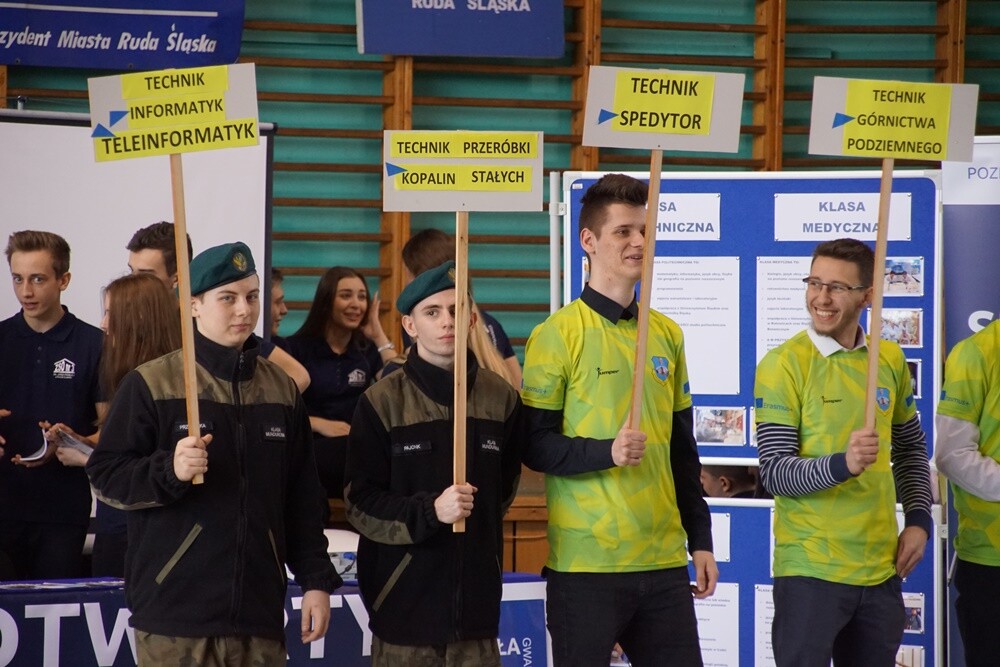 Ponad tysiąc uczniów wzięło dzisiaj udział w Giełdzie Szkół Ponadgimnazjalnych w Rudzie Śląskiej, która odbyła się w hali sportowej MOSiR przy ul. Kłodnickiej 95 w dzielnicy Halemba. Podczas wydarzenia uczniowie mogli w jednym miejscu zapoznać się z ofertą edukacyjną wszystkich szkół średnich działających w Rudzie Śląskiej oraz odwiedzić stoiska instytucji związanych z rynkiem pracy. Targi organizowane są z myślą o gimnazjalistach z klas trzecich, którzy już za kilka miesięcy będą musieli zdecydować, jaką szkołę wybrać – liceum ogólnokształcące, technikum, czy może szkołę branżową I stopnia.