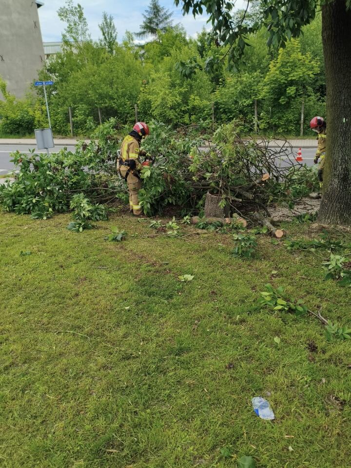 Działania strażaków koncentrowały się na wypompowywaniu wody z zalanych ulic oraz usuwaniu powalonych drzew i konarów. Zgłoszenia dotyczyły głównie utrudnień w ruchu oraz zagrożeń dla posesji i zaparkowanych pojazdów.