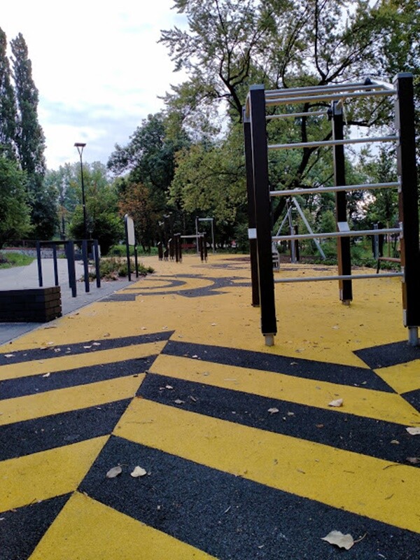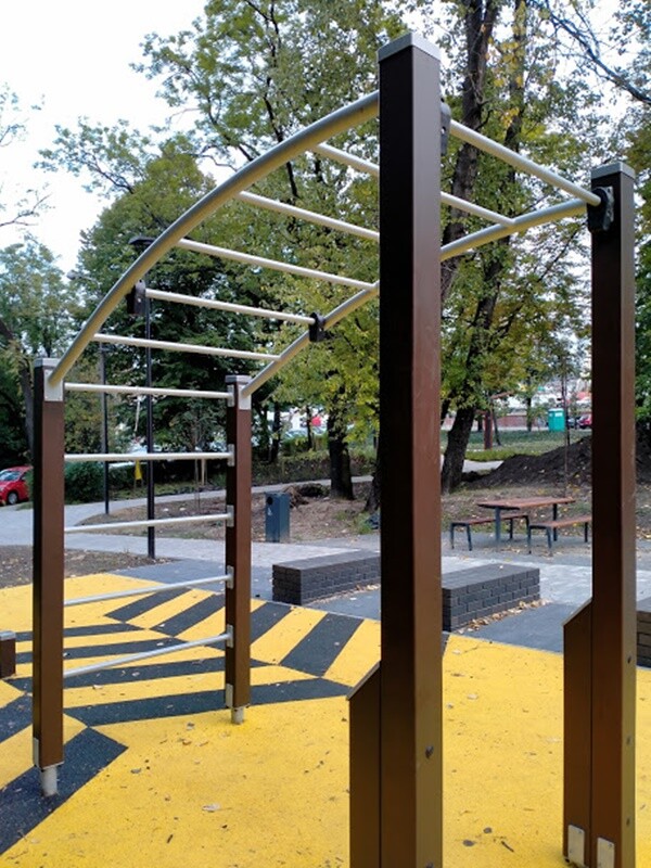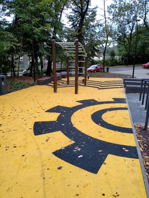Skwer przy ul. Tuwima w Wirku pięknieje! Na finiszu jest już montaż siłowni zewnętrznej oraz tyrolki. Postęp robót przy tej inwestycji jest widoczny gołym okiem. Zadania te realizowane są w ramach II etapu budowy Traktu Rudzkiego.