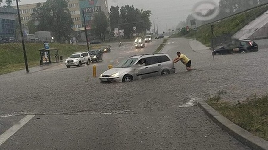 Gwałtowne oberwania chmur nad całym regionem spowodowały podtopienia i zamieniły część ulic w potoki! Występują ogromne utrudnienia w ruchu.
