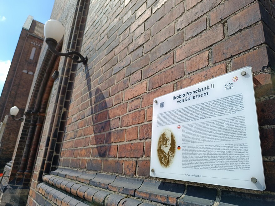 Przypomnijmy, że ród Ballestremów był jednym z najbardziej wpływowych i bogatych na Górnym Śląsku. Postacią szczególnie ważną w historii Rudy Śląskiej był hrabia Franciszek II Ballestrem, który urodził się 5 września 1834 roku w Pławniowicach. Jako członek partii „Centrum” był mocno zaangażowany politycznie. W latach 1872-1906, z pięcioletnią przerwą, był posłem do Reichstagu, a od 1898 do 1906 pełnił funkcję jego przewodniczącego. Za zasługi dla społeczności katolickiej w okresie Kulturkampfu w 1873 roku został mianowany tajnym szambelanem papieskim di spada e cappa, był także dziedzicznym członkiem pruskiej Izby Panów oraz rzeczywistym tajnym radcą cesarskim z tytułem excelentia. Z jego polecenia w Rudzie powstały osiedla robotnicze oraz służące rodzinom robotników m.in. szkoła średnia, sześć szkół podstawowych, sala gimnastyczna i szpital oraz ośrodek rekonwalescencyjny w Głuchołazach. Ruda dzięki hrabiemu już w 1889 roku posiadała elektryczne oświetlenie ulic. Hrabia był twórcą założonej w 1900 roku Zakładowej Kasy Oszczędności (gdzie pracownicy jego dóbr mogli lokować swoje składki rentowo-emerytalne) oraz inicjatorem i fundatorem budowy rudzkiego kościoła św. Józefa, w którym jest pochowany. Zmarł 23 grudnia 1910 roku.