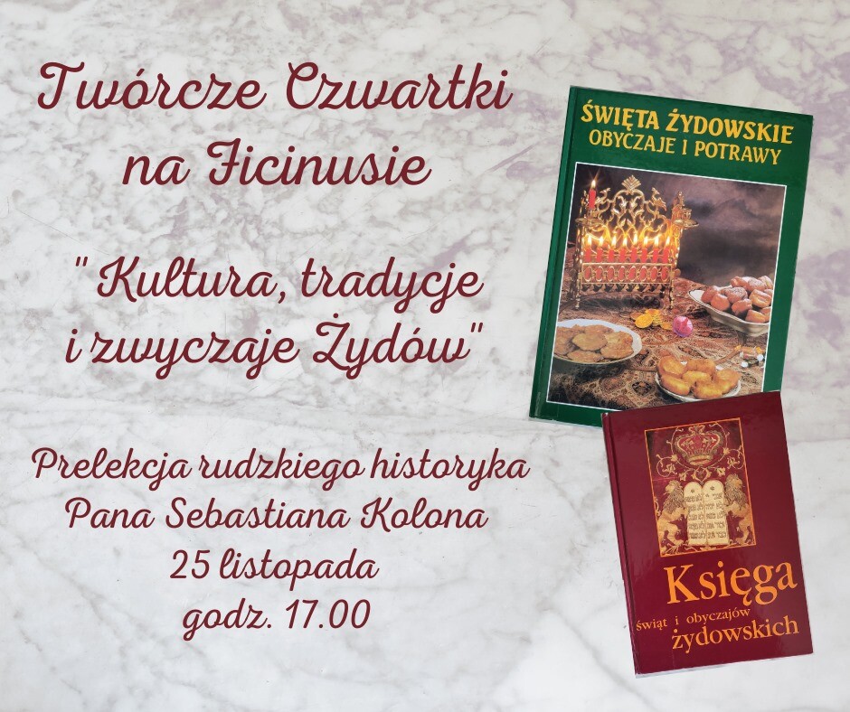 25 listopada o godz. 17:00 w zabytkowym budynku Biblioteki Ficinus przy ul. P. Kubiny 24 w Rudzie Śląskiej - Wirku rozpocznie się wieczór z kulturą i tradycją Żydów.