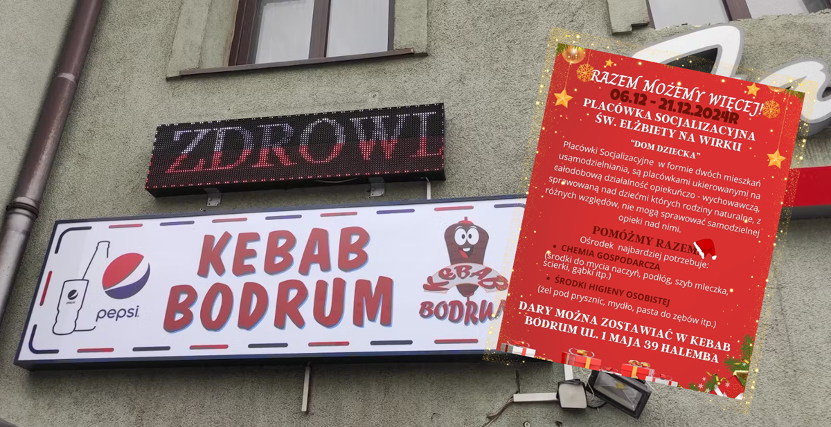 Kebab Bodrum po raz kolejny udowadnia, że lokalny biznes może wspierać najbardziej potrzebujących. W dniach od 6 do 21 grudnia w lokalu przy ul. 1 Maja 39 w Rudzie Śląskiej (Halemba) odbywa się zbiórka produktów na rzecz Placówki Socjalizacyjnej św. Elżbiety w Wirku. To miejsce zapewnia całodobową opiekę i wsparcie dzieciom, których rodziny z różnych powodów nie mogą sprawować nad nimi opieki.