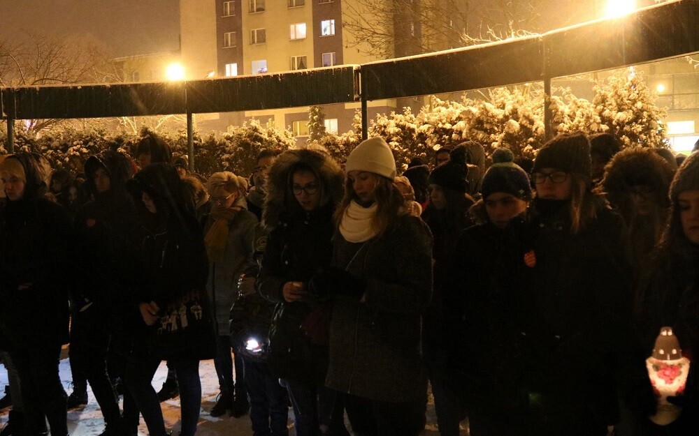 - Dwa dni temu, na tym placu byliśmy pełni radości, energii i entuzjazmu, bo po raz kolejny udało nam się zrobić coś naprawdę pięknego i dobrego. Bardzo długo zastanawiałem się co mam tutaj powiedzieć, bo to nasze, dzisiejsze spotkanie ma być symbolem. Mam nadzieję, że moje słowa wyrażą to, co czujemy chyba wszyscy. Jesteśmy tutaj, ciągle zszokowani i ciągle nie dowierzamy w to, co się wydarzyło, ale spotkaliśmy się tutaj, żeby powiedzieć "nie". Nie zgadzamy się na to, aby nienawiść, agresja i takie ślepe zło niszczyło to, co jest dobre i piękne. Tego dzieła, które jest tworzone przez WOŚP od prawie ćwierć wieku, nie zniszczy jeden szaleniec. Poprzez to nasze symboliczne światełko i chwilę milczenia chcemy się połączyć z Gdańskiem oraz rodziną prezydenta Pawła Adamowicza - mówił Michał Kozera, szef sztabu WOŚP przy ZSO nr 3.