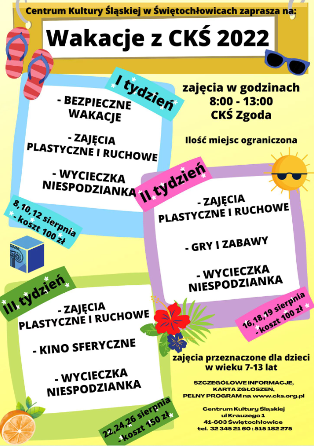 Karta zgłoszeń dostępna na stronie – https://cks.org.pl/wakacje-z-cks/