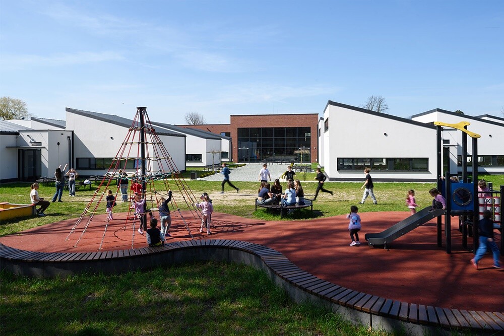 - Projektowany budynek jest dedykowany najważniejszym jego użytkownikom - dzieciom. Koncepcja zabudowy szkoły wynika z kilku przesłanek. Jest obiektem w skali dziecka, w którym uczniowie poruszają się wyłącznie po jednej kondygnacji. Nawiązaliśmy w ten sposób do idei szkoły, jako "miasta dzieciństwa", która zyskała duże uznanie w kręgach edukacyjnych - mówią projektanci z Hornik Chmura Architektura. - Warto także podkreślić walor techniczny budynku segmentowego, w którym każda jednostka klasowa stanowi odrębny ustrój konstrukcyjny. Dzięki tej zasadzie obiekt jako całość będzie poddawał się deformacjom terenu będącym wynikiem intensywnej eksploatacji górniczej na tym terenie, bez znaczącej szkody dla konstrukcji obiektu. Jednokondygnacyjność tej struktury jest dodatkowym argumentem obniżającym ryzyko niekorzystnego wzajemnego oddziaływania poszczególnych segmentów oraz pretekstem do zmniejszenia dylatacji. Dzięki przyjętym rozwiązaniom możliwe było przywrócenie jakościowej funkcji społecznej w praktycznie wykluczonej i zdegradowanej przestrzeni.