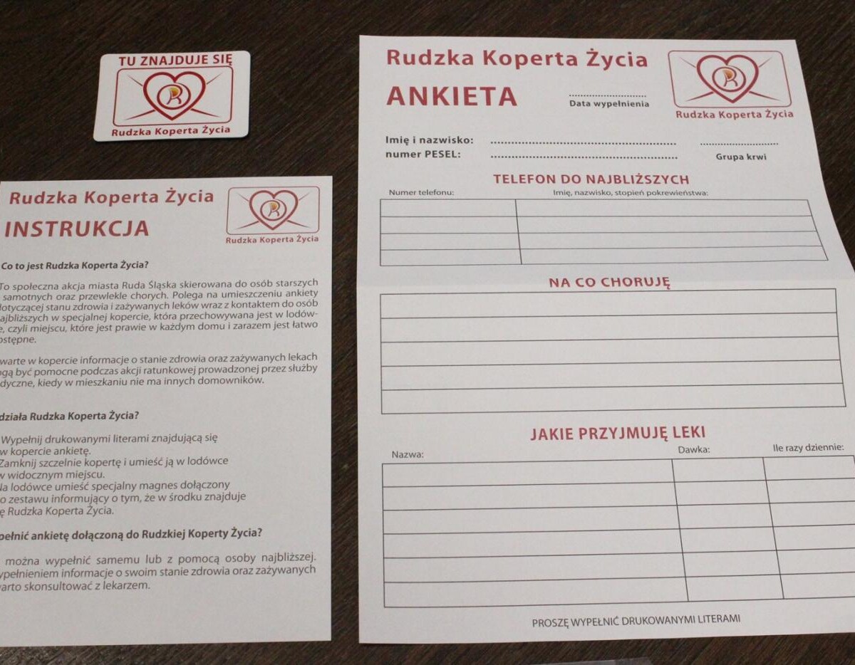 Jest to urządzenie, które znajduje się niemal w każdym domu, jest z daleka widoczne i wiadomo, gdzie go szukać – wyjaśnia Krzysztof Piecha, naczelnik Wydziału Komunikacji Społecznej i Promocji Miasta. Całość zestawu dopełnia instrukcja informująca, jak prawidłowo wypełnić ankietę oraz magnes z adnotacją: „Tu znajduje się Rudzka Koperta Życia”, który należy umieścić na drzwiach lodówki.