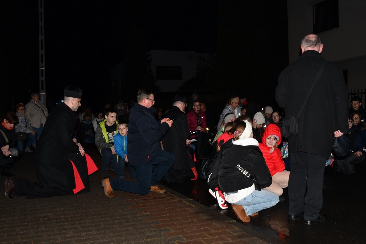 Chociaż pogoda nie sprzyjała, a w powietrzu unosiła się nieprzyjemna mżawka, w żaden sposób nie przeszkodziło to wiernym w odtworzeniu męczeńskiej drogi Chrystusa.