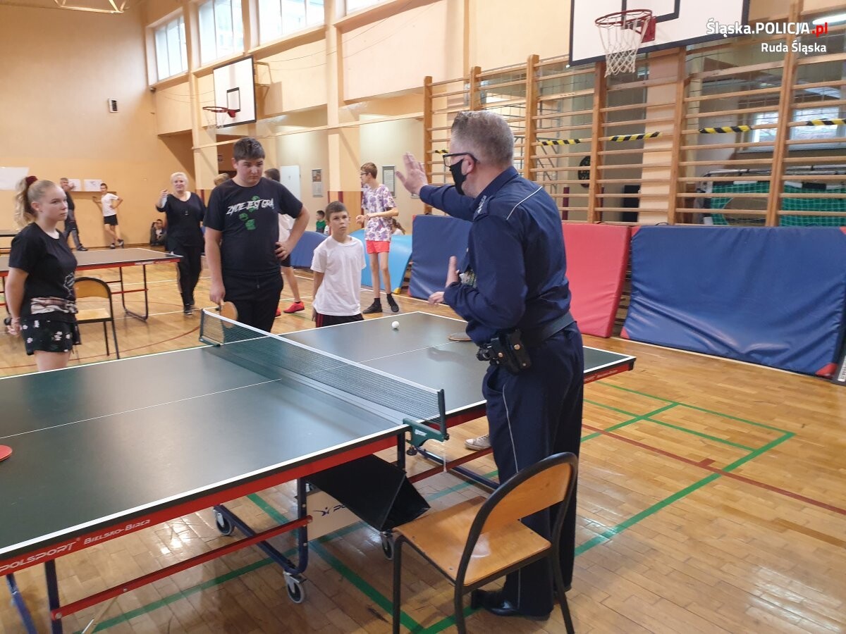 Dzielnicowy z rudzkiej jedynki - asp. szt. Marek Jeglorz wraz z dyrekcją i nauczycielami Szkoły Podstawowej nr 35 zorganizował kolejny Profilaktyczny Turniej Tenisa Stołowego, nad którym patronat objął Komisariat Policji I w Rudzie Śląskiej. W eliminacjach i samym turnieju brało udział 12 uczniów. Był to też dobry czas, aby przybliżyć uczestnikom nie tylko zasady fair play, ale i bezpieczeństwa w szkole i poza nią.