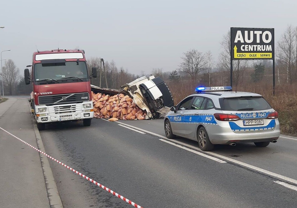 Pojazd został już podniesiony, mięso również zostało usunięte i skierowane do utylizacji. Obecnie strażacy myją nawierzchnię, droga zostanie niebawem ponownie otwarta.
