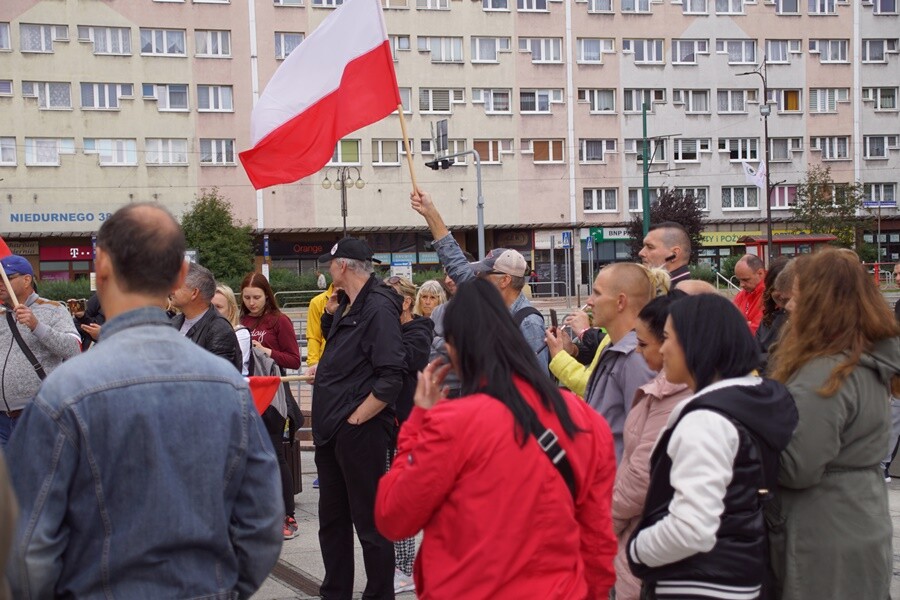 Uczestnicy spotkali się w sobotę - 26 września na Placu Jana Pawła II w Nowym Bytomiu. Mieli transparenty z napisami m.in. "Śląsk rusza po wolność. Boisz się wirusa, czy mandatu?", "Stop plandemii", "Śląsk to nie zaraza". Wielu z nich miało także polskie flagi w rękach, a niektórzy na ramionach mieli założone biało-czerwone opaski z kotwicą Polski Walczącej.