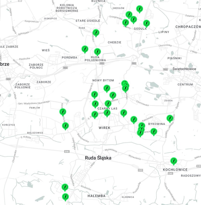Wczoraj wiceprezydent Jacek Morek poinformował, że Rudzie Śląskiej w końcu uruchomiono 56 ogólnodostępnych punktów ładowania pojazdów elektrycznych. Takie miejsca zostały wyznaczone prawie we wszystkich dzielnicach – prócz Chebzia.