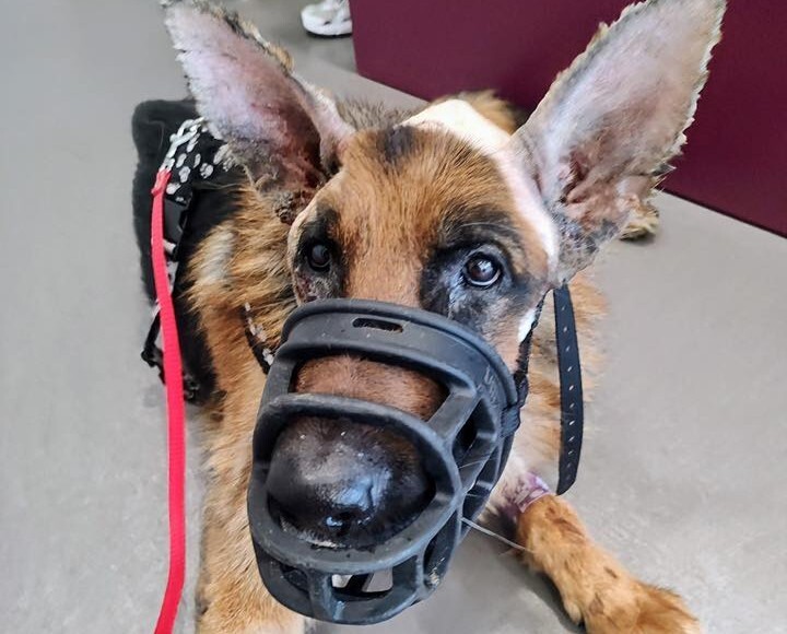W kwietniu na łamach naszego portalu informowaliśmy o zabezpieczeniu przez schronisko skrajnie zaniedbanego owczarka niemieckiego. Piesek był skrajnie wychudzony, miał otwarte rany pyska i uszu, zaawansowaną ropowicę i martwicę skóry głowy, zaniki mięśniowe, a także podejrzewano u niego dysplazję. Uzi od dnia, gdy trafił pod opiekę pracowników schroniska, walczy o zdrowie i lepsze życie.