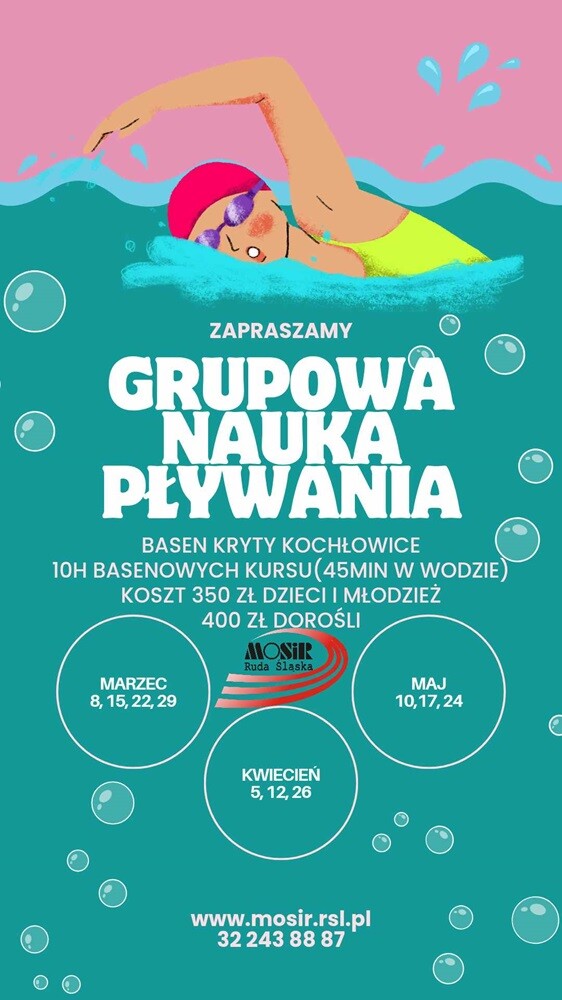 - Zbliża się sezon letni, więc nabycie umiejętności pływackich zagwarantuje dodatkowe bezpieczeństwo i pewność podczas kąpieli w otwartych akwenach! - apelują przedstawiciele MOSiR Ruda Śląska.