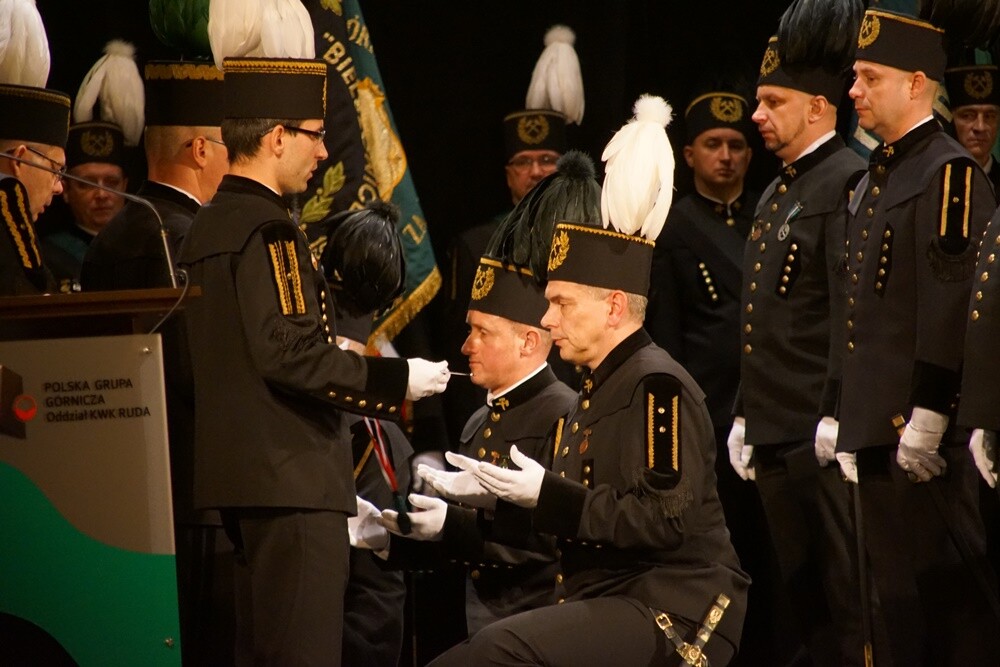 Po przemówieniach najbardziej zasłużeni górnicy zostali odznaczeni medalami i szpadami, które są symbolem wolności stanu górniczego. W tym roku wyróżnionych zostało: 287 pracowników, którzy kopalni poświęcili co najmniej 25 lat. 81 górników nabyło prawo do noszenia honorowej szpady górniczej. 114 pracowników otrzymało odznakę "Zasłużony dla kopalni Ruda". Odznakę "Zasłużony dla górnictwa Rzeczpospolitej” otrzymało 36 osób. Wyższe stopnie górnicze otrzymało 406 osób.
