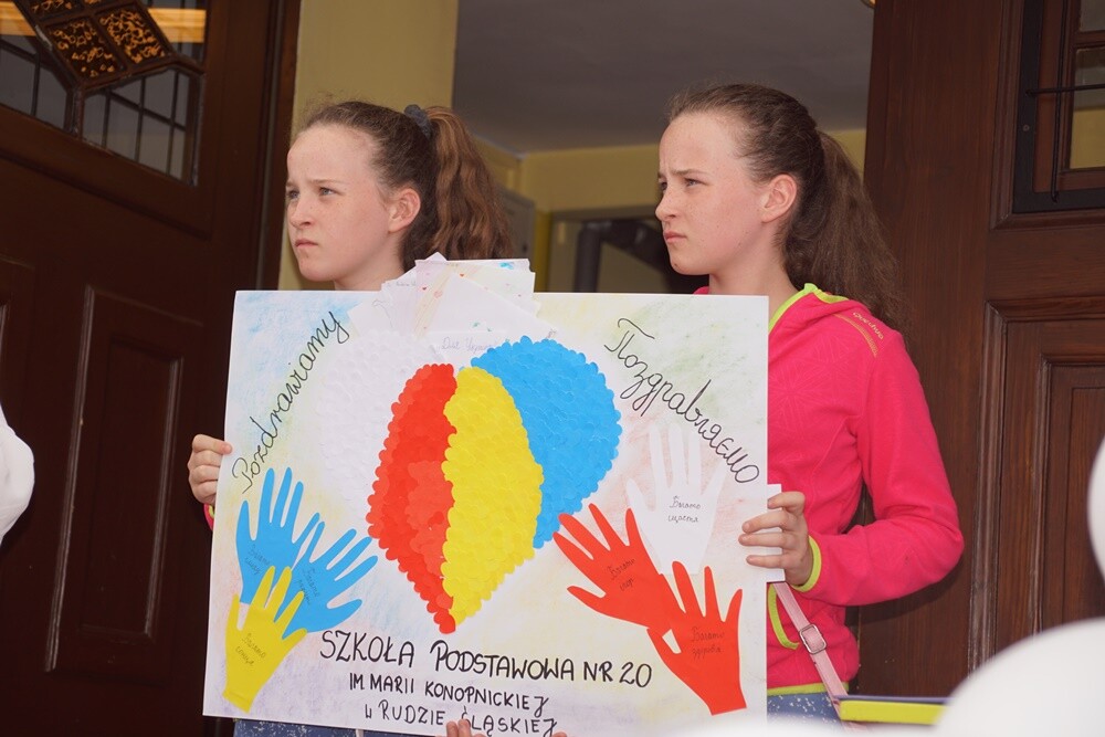 Gośćmi specjalnymi byli przedstawiciele szkoły na Ukrainie. Rudzka placówka od dłuższego czasu organizuje zbiórki ubrań, zabawek i najbardziej potrzebnych rzeczy dla dzieci zza wschodniej granicy. Podczas festynu odbyła się zbiórka pieniędzy. Cały dochód zostanie przeznaczony na organizację wizyty dzieci z Ukrainy w kochłowickiej szkole.