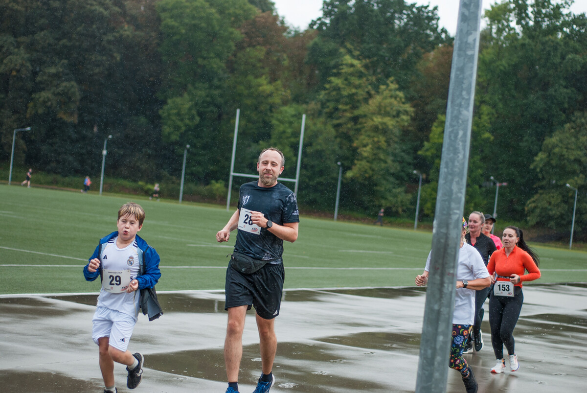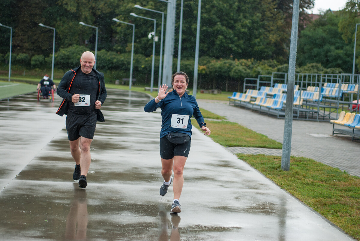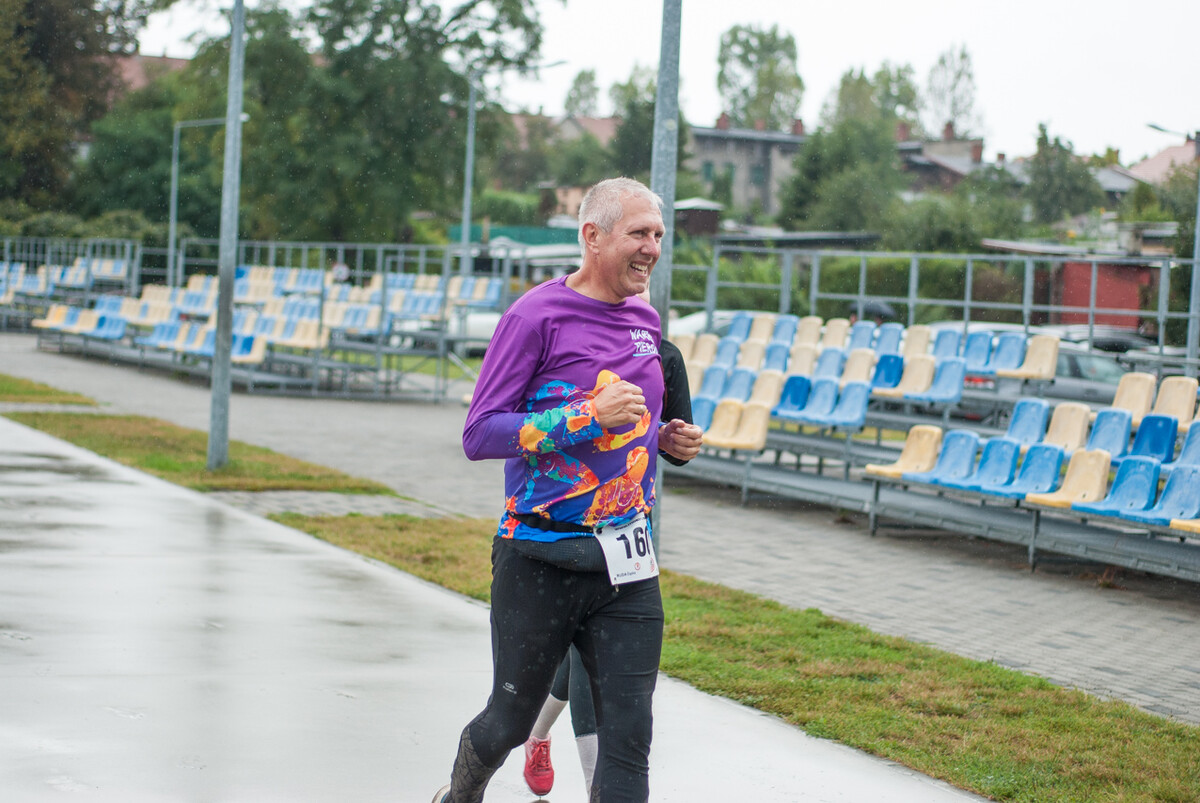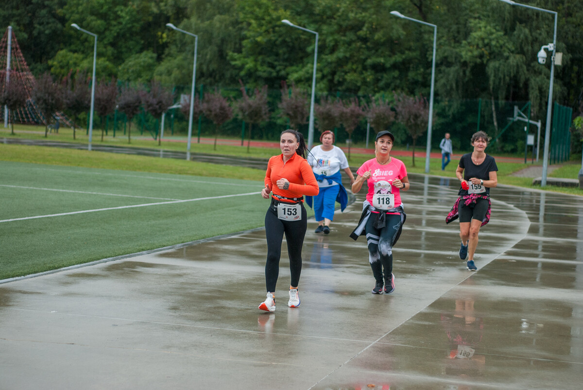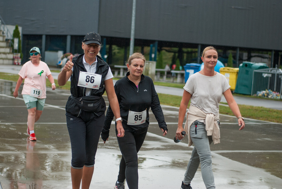 Choć z nieba niemal cały czas kropiło (raz mocniej, raz słabiej), na starcie pojawiło się około 150 uczestników (na 160 zapisanych). Około 9:25 kolorowy peleton biegaczy ruszył w trasę wokół Burloch Areny oraz pobliskiego parku. Niektórzy biegiem, inni truchtem, marszem, spacerem, z kijkami lub na wózku. I z uśmiechami na twarzy.