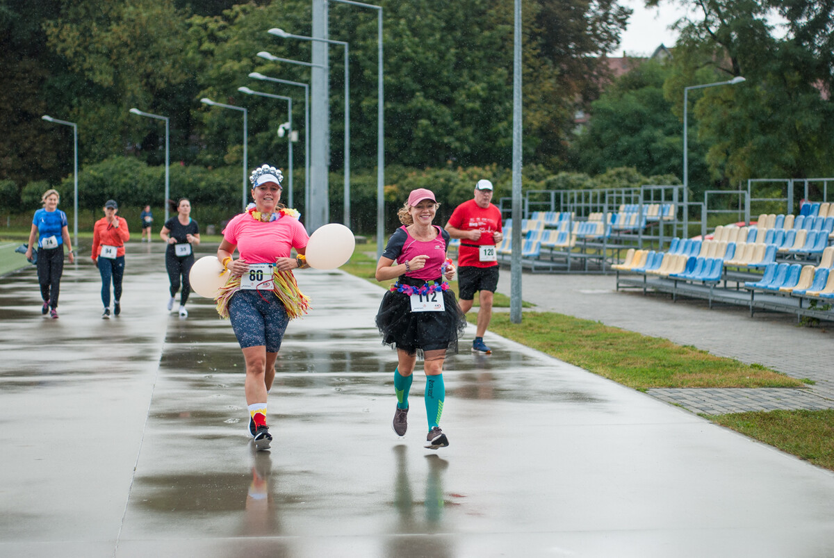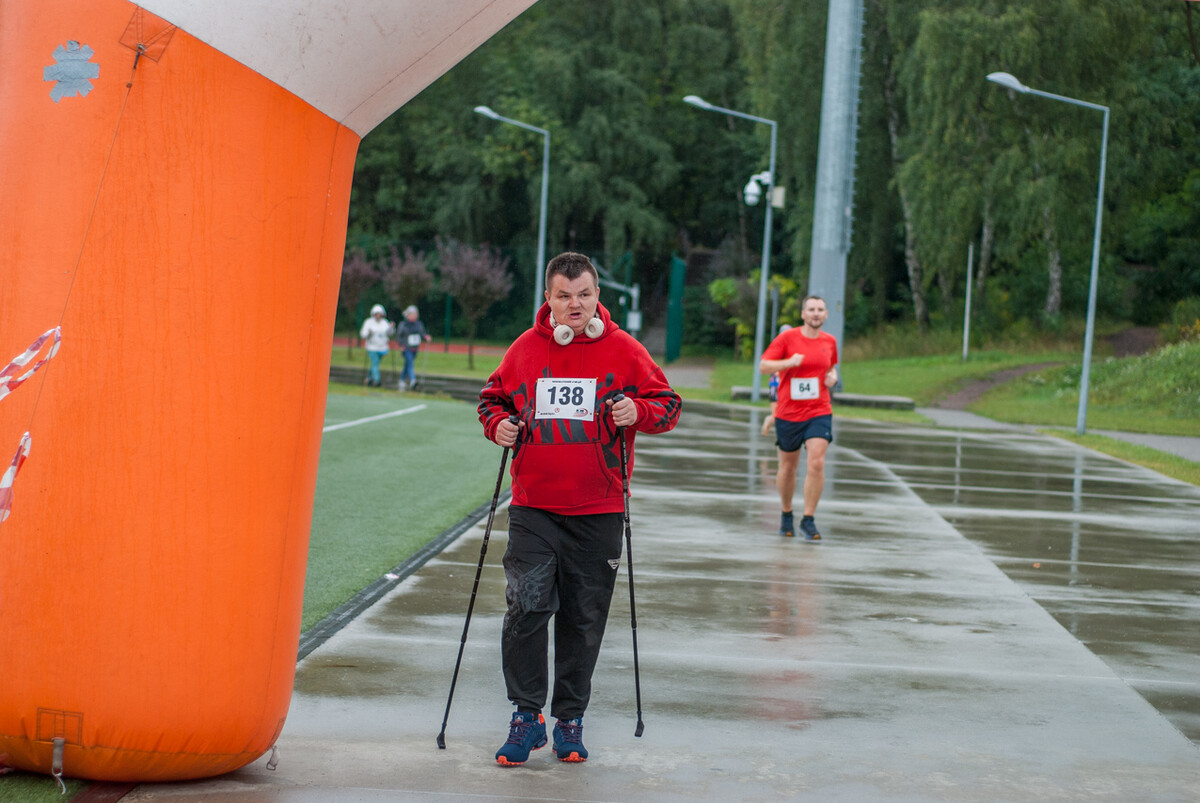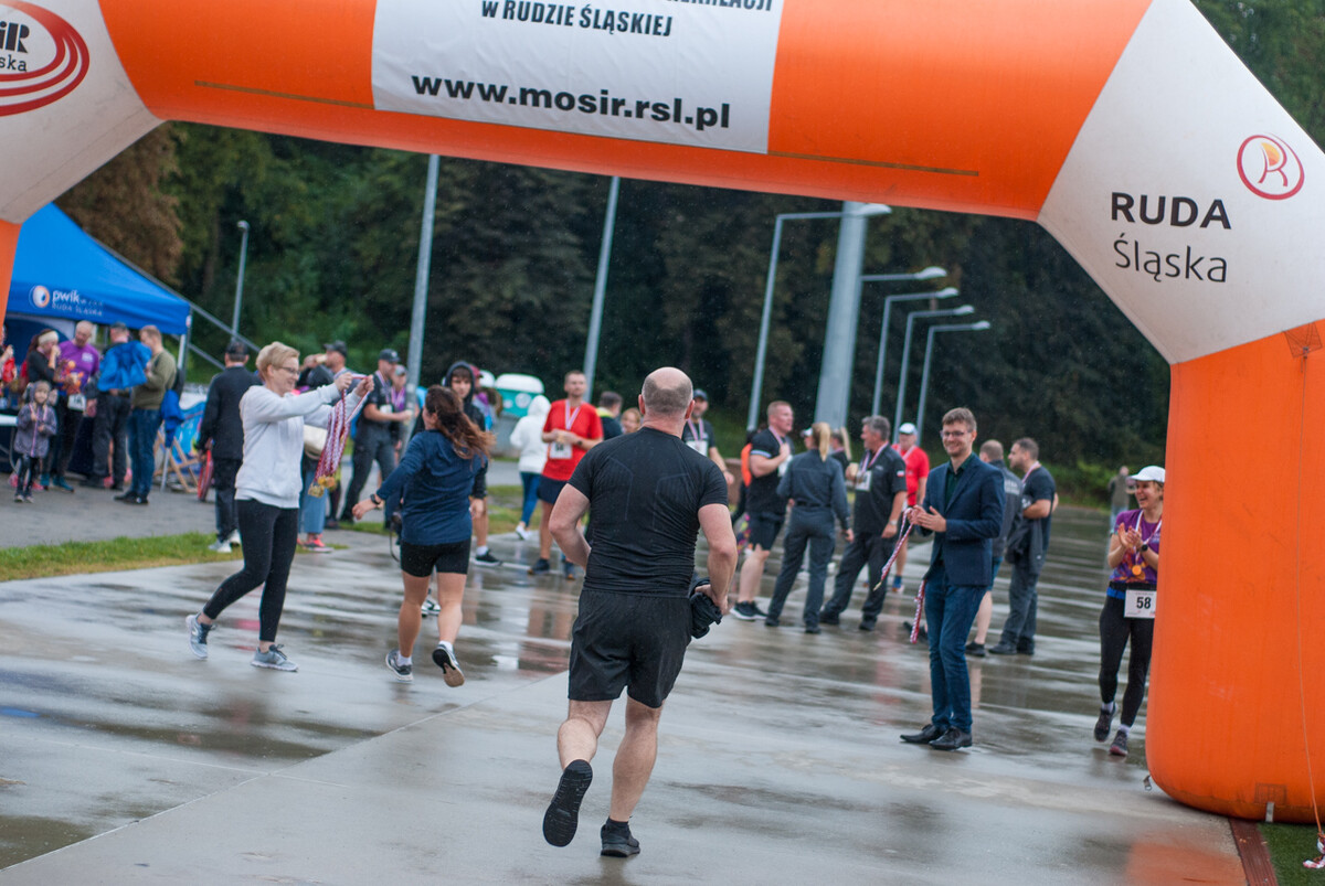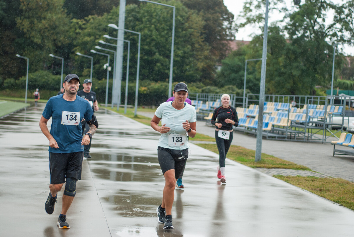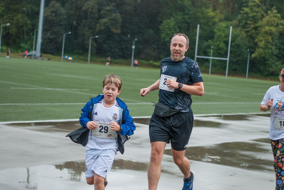 Choć z nieba niemal cały czas kropiło (raz mocniej, raz słabiej), na starcie pojawiło się około 150 uczestników (na 160 zapisanych). Około 9:25 kolorowy peleton biegaczy ruszył w trasę wokół Burloch Areny oraz pobliskiego parku. Niektórzy biegiem, inni truchtem, marszem, spacerem, z kijkami lub na wózku. I z uśmiechami na twarzy.