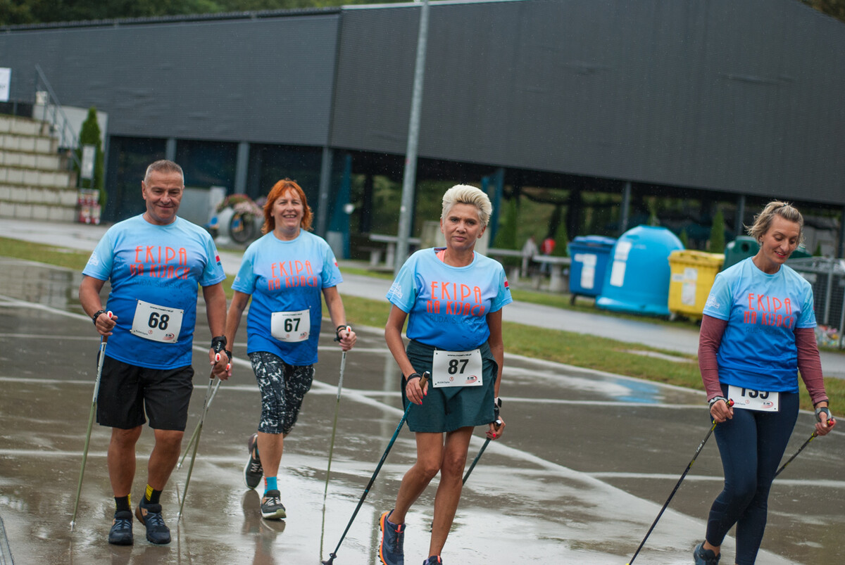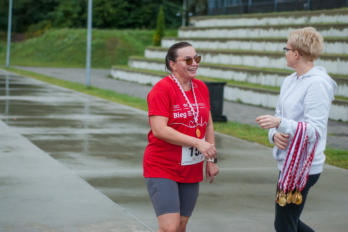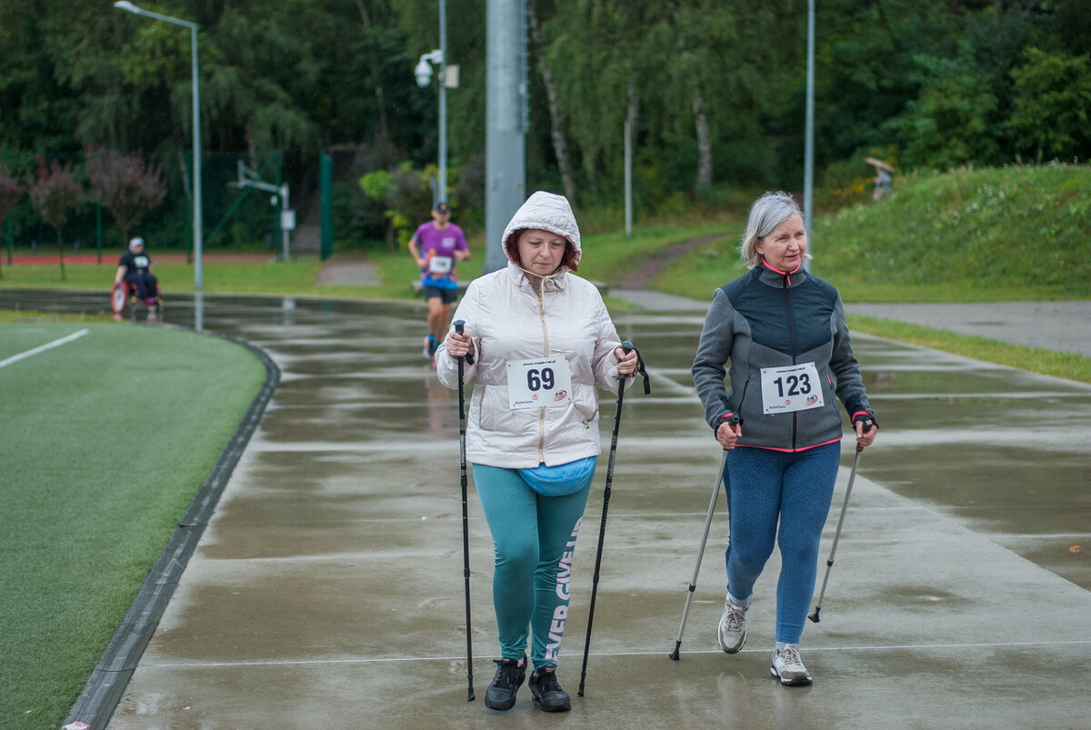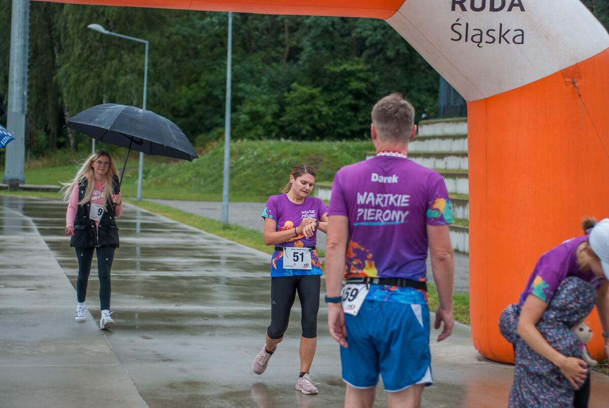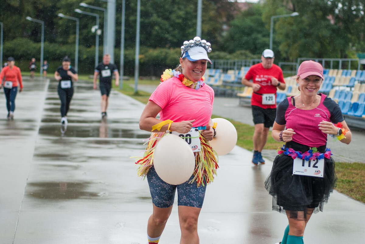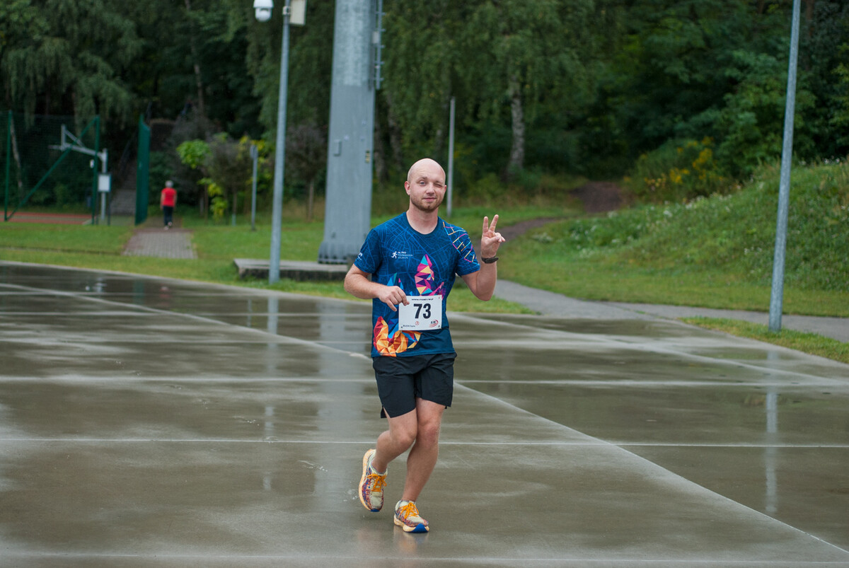 Choć z nieba niemal cały czas kropiło (raz mocniej, raz słabiej), na starcie pojawiło się około 150 uczestników (na 160 zapisanych). Około 9:25 kolorowy peleton biegaczy ruszył w trasę wokół Burloch Areny oraz pobliskiego parku. Niektórzy biegiem, inni truchtem, marszem, spacerem, z kijkami lub na wózku. I z uśmiechami na twarzy.