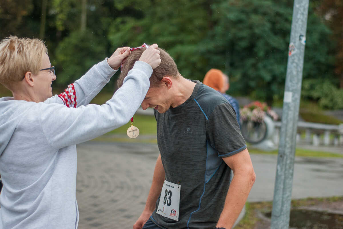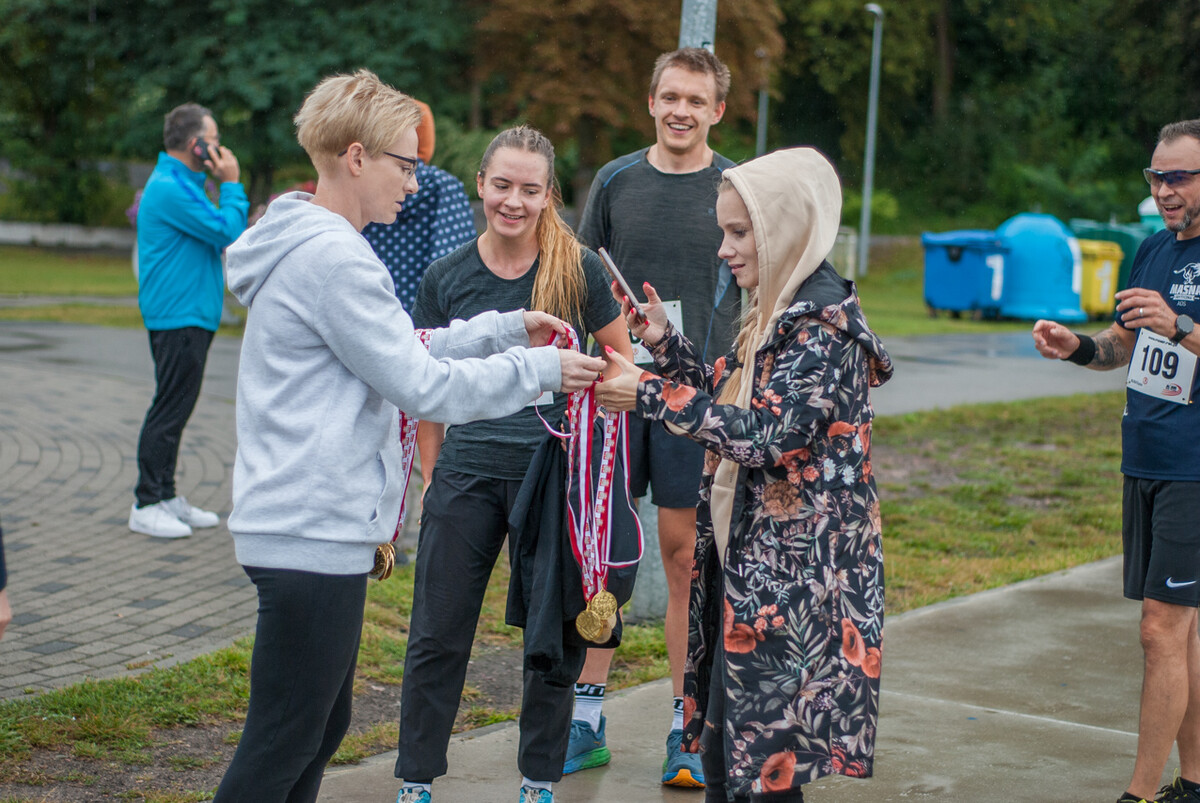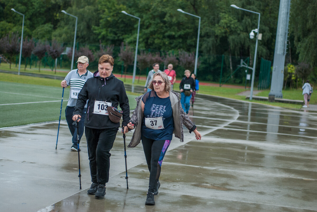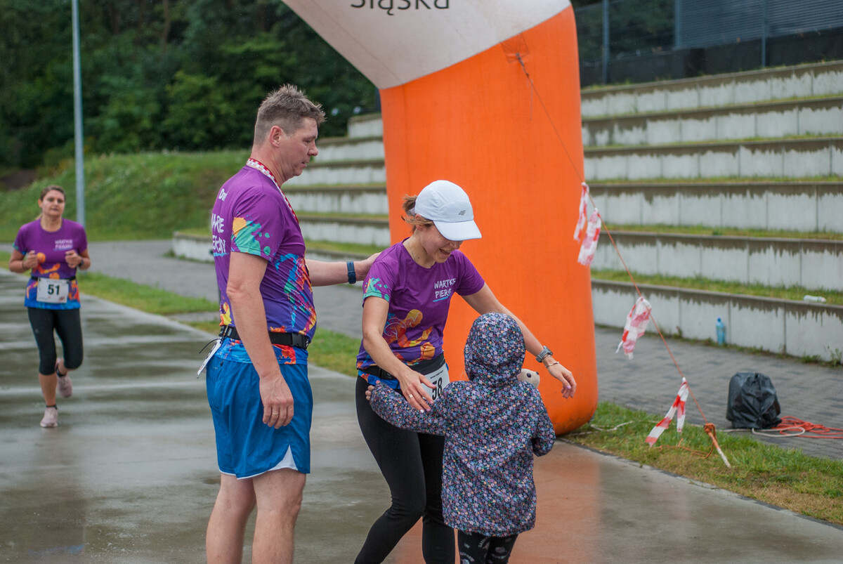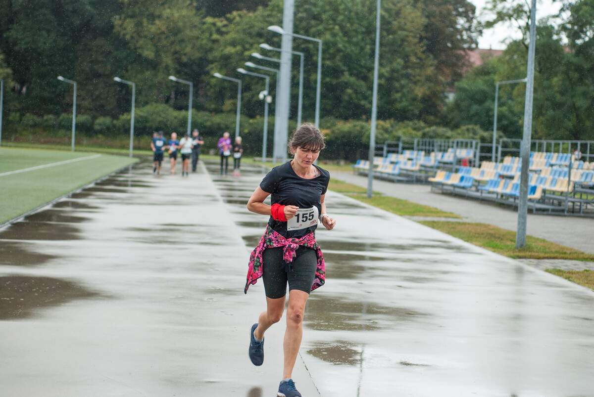 Choć z nieba niemal cały czas kropiło (raz mocniej, raz słabiej), na starcie pojawiło się około 150 uczestników (na 160 zapisanych). Około 9:25 kolorowy peleton biegaczy ruszył w trasę wokół Burloch Areny oraz pobliskiego parku. Niektórzy biegiem, inni truchtem, marszem, spacerem, z kijkami lub na wózku. I z uśmiechami na twarzy.
