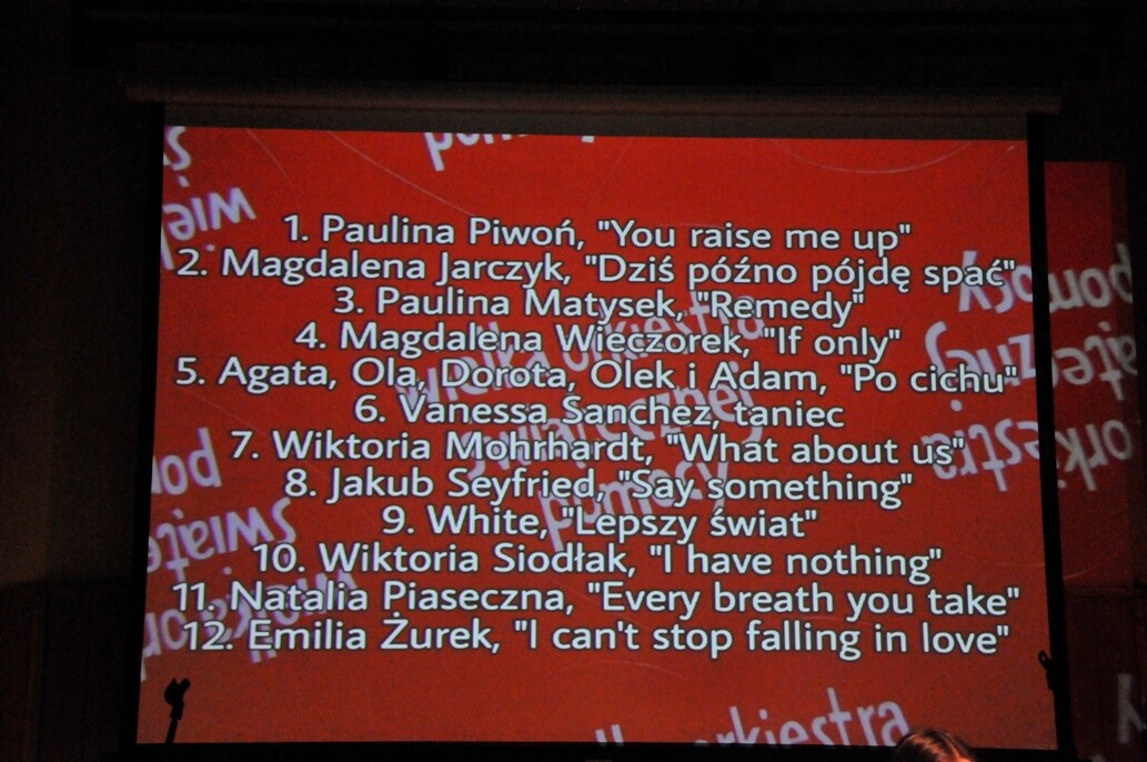 12 uczestników koncertu wzięło udział w rywalizacji, choć głównym celem, jak zwykle, było zebranie pieniędzy dla Wielkiej Orkiestry Świątecznej pomocy z biletów i fantów, przekazanych na licytację. W tym roku były to: książka "Elon Musk" oraz podarowany przez Panią Prezydent Grażynę Dziedzic obraz rudzkiego autora, przedstawiający gołębie.