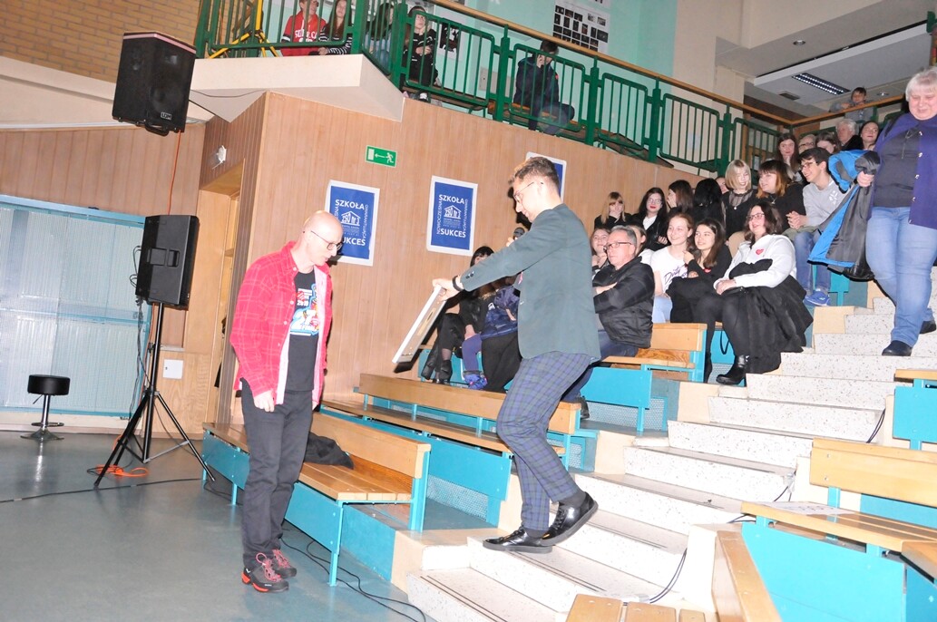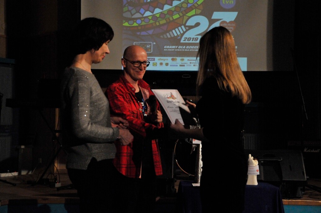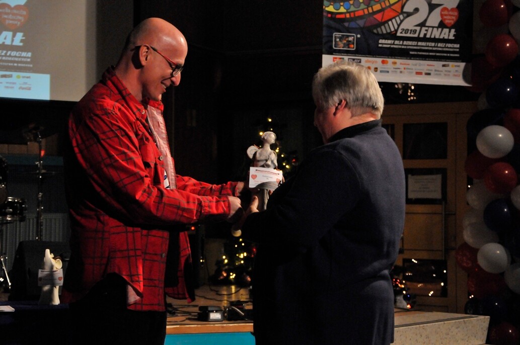 Po przerwie, przewodniczący komisji, Pan Michał Kozera, zabrał głos. Przed przedstawieniem wyników, wspominał poprzednie edycje z sentymentem i wdzięcznością dla wszystkich którzy zaangażowali się w ten koncert. Przekazał również nagrodę Dobrego Anioła Pani Annie, która pomogła już przy dziesiątym koncercie.