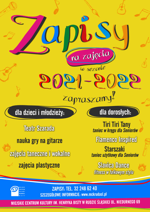 Mamy nadzieję, że w nowym sezonie znów zechcą Państwo skorzystać z propozycji MCK i tłumnie będą uczestniczyć w wybranych przez siebie zajęciach.