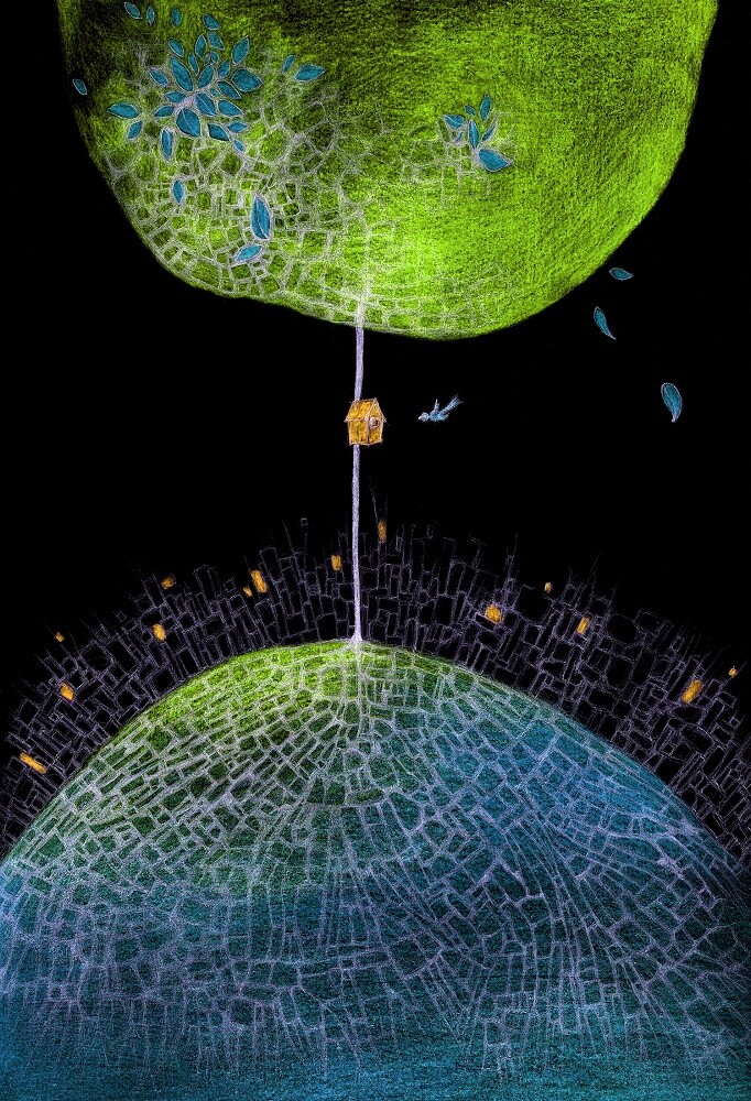 Nie mam pojęcia, skąd to się bierze! Pamiętam, że „Księżyc” był pierwszy jeżeli chodzi o „mozaikowe prace” i dał początek całej serii i dalszym pomysłom. Czasem mam cały projekt w głowie i siadam, robiąc coś, co sobie wymyśliłam (nigdy nie wychodzi identycznie), ale najczęściej wygląda to w ten sposób, że biorę długopis lub ołówek i po prostu rysuję, nie wiedząc jeszcze, co z tego wyniknie. Wszystkie postacie powstały przypadkiem. Bywa, że jakieś polubię i robię cały cykl.