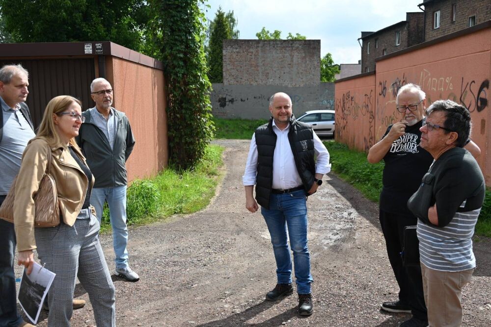 Właściciele garaży przy ulicy Cynkowej w Czarnym Lesie zgłaszali problem z drogą dojazdową, a szczególnie ze zjazdem na ulicę Cynkową. Wskazują, że podczas opadów jest on regularnie wypłukiwany, co powoduje tworzenie się wyrw i nanoszenie kamieni na jezdnię. 18 lipca na miejsce udali się prezydent Michał Pierończyk, pani prezes MPGM TBS Sp. z o.o oraz pracownicy spółki, aby ocenić skalę problemu.