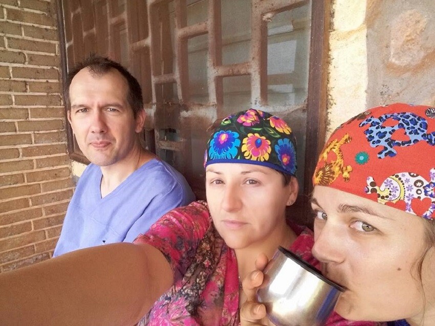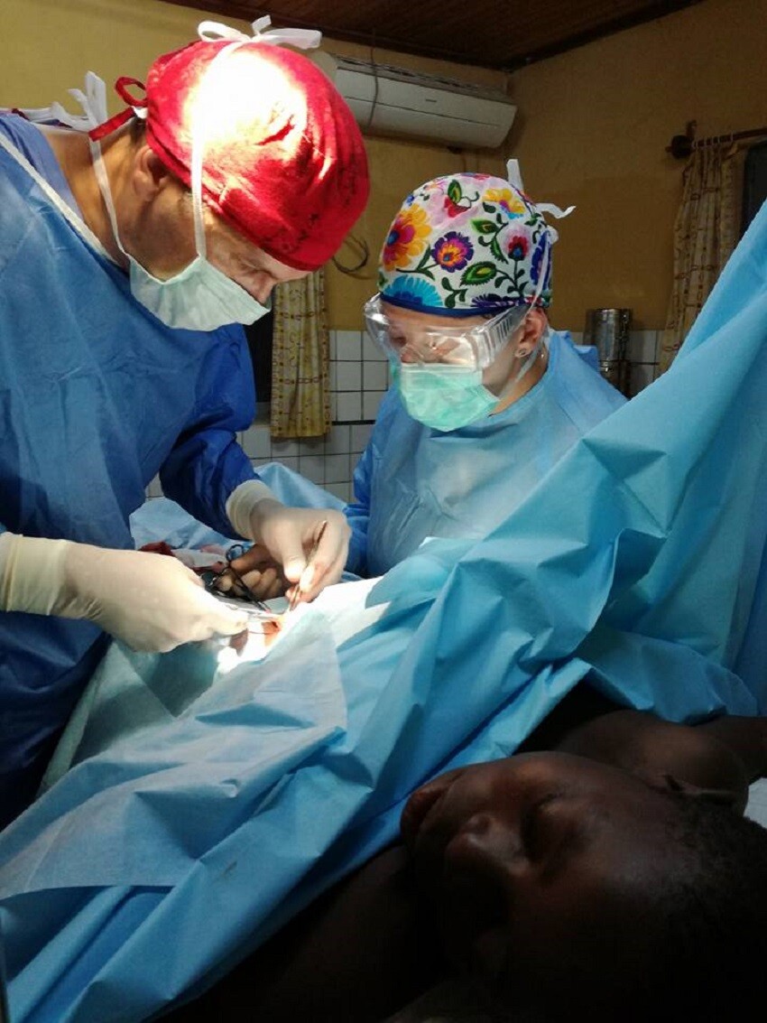 Pustą salę, zardzewiały stół operacyjny przystosowany swoją długością do lokalnej ludności, czyli miał około 150 cm długości, moskitiery, karaluchy, jaszczurki. Wszystko zakurzone, pusta butla tlenu, zepsuty ssak. To ostatnie nie do końca było prawdą, bo okazało się, że był, tylko założonono go „na odwrót”, wiec działał...pod warunkiem, że był prąd. A ten czasami był, czasami go nie było. Na miejscu były też lokalne pielęgniarki i lekarz. Porozumiewaliśmy się głównie po angielsku, przypomniałam sobie też coś z francuskiego. A jak nie, to się pomachało rękami i jakoś się człowiek zawsze dogadał.