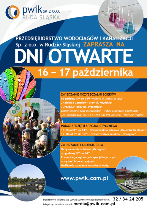 Miło nam poinformować, że 16 i 17 października br. odbędą się kolejne Dni Otwarte PWIK - Przedsiębiorstwa Wodociągów i Kanalizacji Sp. z o.o. w Rudzie Śląskiej.