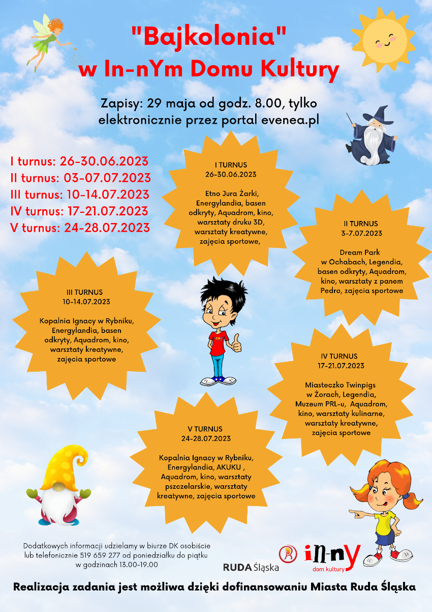 In-nY Dom Kultury serdecznie zaprasza na wesołe i aktywne półkolonie "BAJKOLONIA".