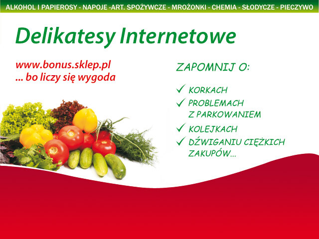 Sprawdź jakie to proste a zarazem wygodne i już dzisiaj zrób zakupy w pierwszych spożywczych Delikatesach Internetowych "Bonus" www.bonus.sklep.pl z siedzibą w Rudzie Śląskiej.