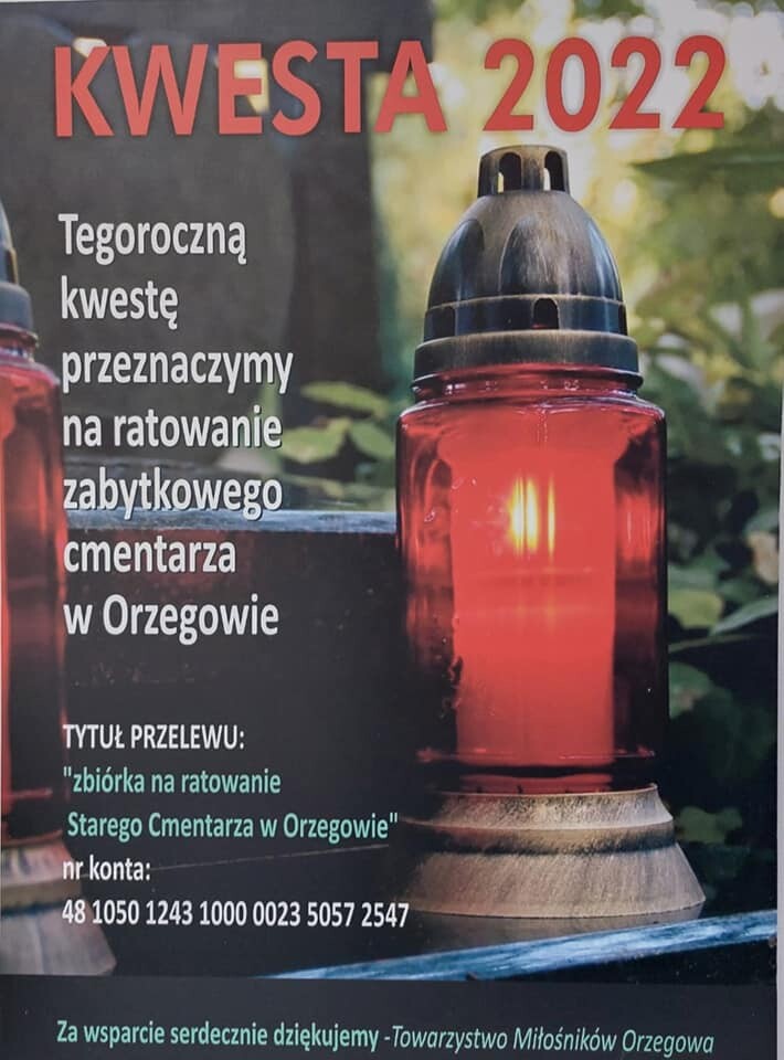 - Jak co roku organizujemy 1 listopada kwestę na ratowanie naszej wyjątkowej historycznej nekropolii. Kwestować będziemy na obydwu orzegowskich cmentarzach. Niestety, są to jedyne środki, jakimi dysponujemy, aby móc cokolwiek zrobić dla ratowania cmentarza. Liczymy na hojność mieszkańców Orzegowa oraz zrozumienie szczytnego celu, jakim jest zachowanie tego wyjątkowego na Śląsku obiektu - napisał Jerzy Kasperek.