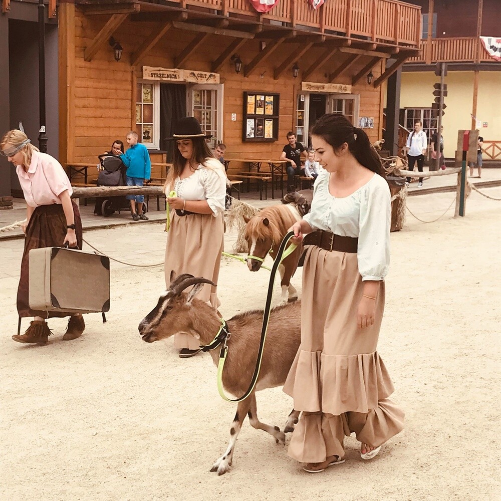 Dzieci mogą spróbować wydoić krowę, wypłukiwać złoto, podkuwać konie, a także strzelać z łuku i strzelby na strzelnicach. Nie brakuje tu również urządzeń typowych dla wesołego miasteczka – koło młyńskie, pędzące karuzele, zjeżdżalnia, dom strachów Nawiedzona Sztolnia i podziemna kolejka.