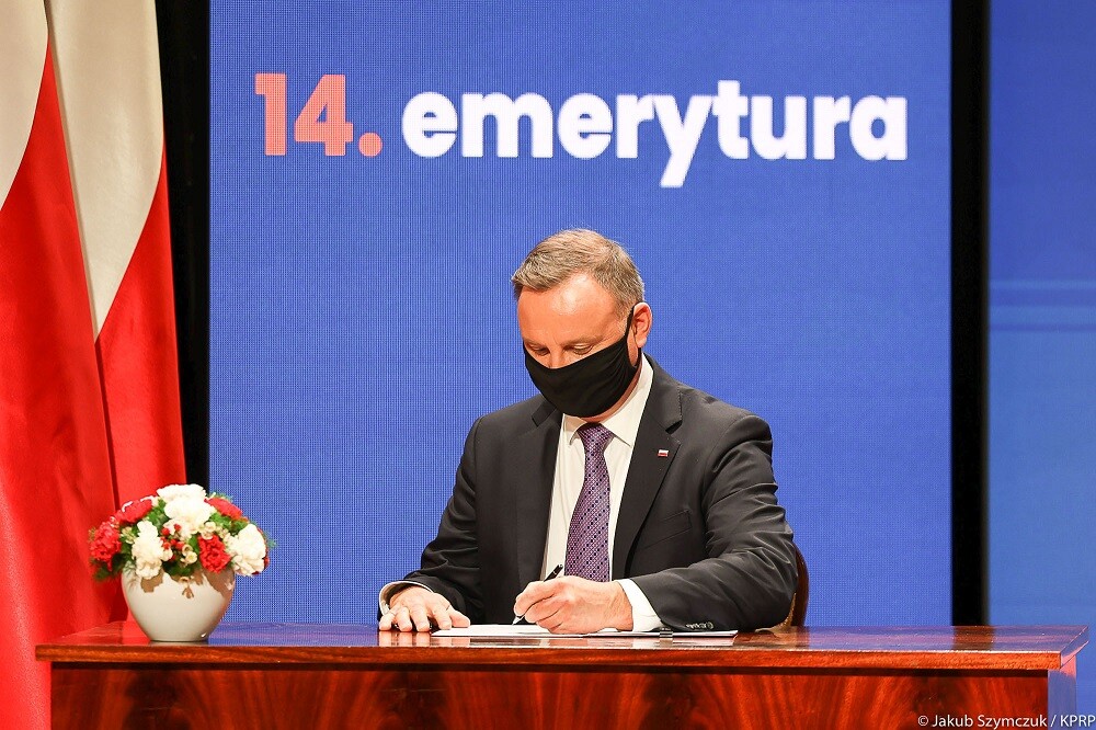 Prezydent RP Andrzej Duda podpisał 8 marca ustawę o kolejnym w 2021 r. dodatkowym rocznym świadczeniu pieniężnym dla emerytów i rencistów, która zakłada wypłatę tzw. 14. emerytury. Świadczenie zostanie wypłacone w listopadzie.