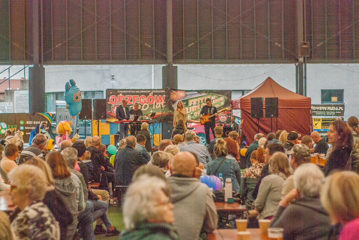 Jak wyglądał rozkład dnia? Ci którzy byli na festynie wcześniej, mieli okazję skorzystać z większej ilości atrakcji. Od godziny 14:00, gdy zaczynało się rozpogadzać, zorganizowano m.in. serię konkurencji sportowo- rekreacyjnych dla dzieci i całych rodzin, rywalizacja na rowerkach, malowanie twarzy i warkoczyki i konkursy wiedzy ogólnej oraz skupionej wokół Orzegowa (sporo można było się dowiedzieć z plansz historycznych rozwieszonych w hali).