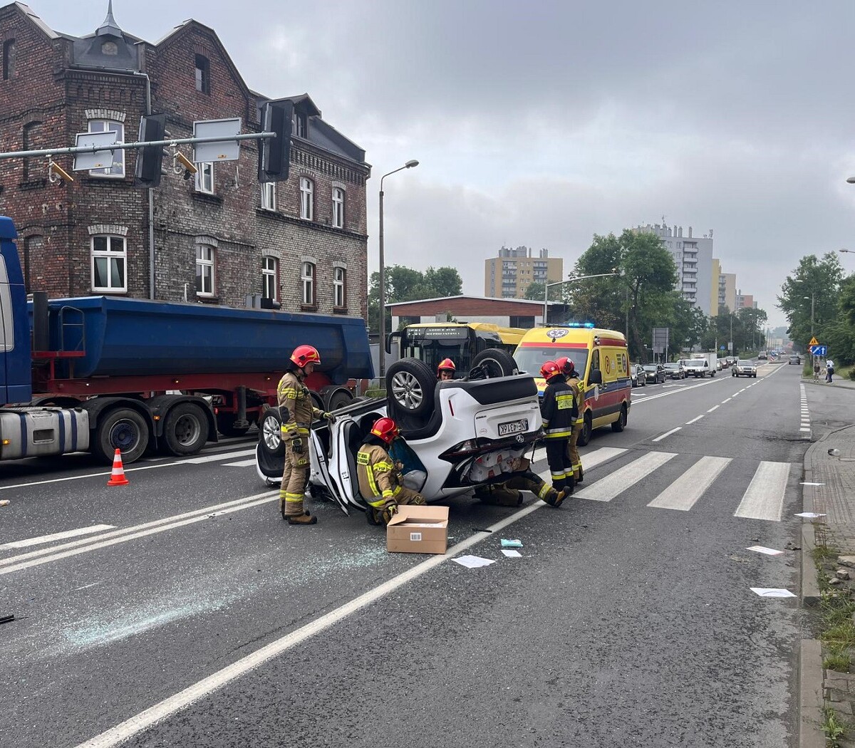 Na miejscu są już służby porządkowe i ratownicze. Występują duże utrudnienia w ruchu. Kierowców prosimy o zachowanie szczególnej ostrożności.