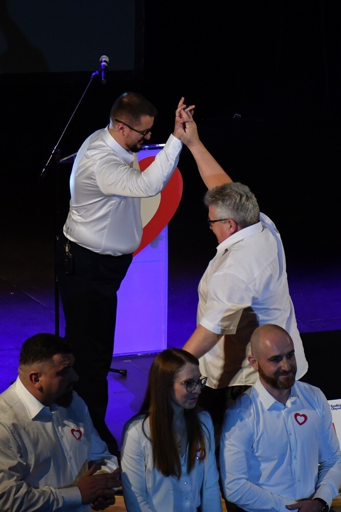 - Stworzyliśmy drużynę, która składa się z młodych ludzi, ale także tych bardziej doświadczonych. Tych doświadczonych poprzez prowadzenie swoich biznesów, menadżerów, a także ludzi, którzy zajmują się kulturą, czy sportem. Jak mówi nasze hasło - "Ruda w sercu Śląska" - nasze miasto ma być dla każdego, nasze miasto ma być w centrum Śląska, nasze miasto ma być przyszłością Śląska. Z tą drużyną zwyciężymy! - mówił Arkadiusz Pilarz, kandydat KO na prezydenta Rudy Śląskiej.