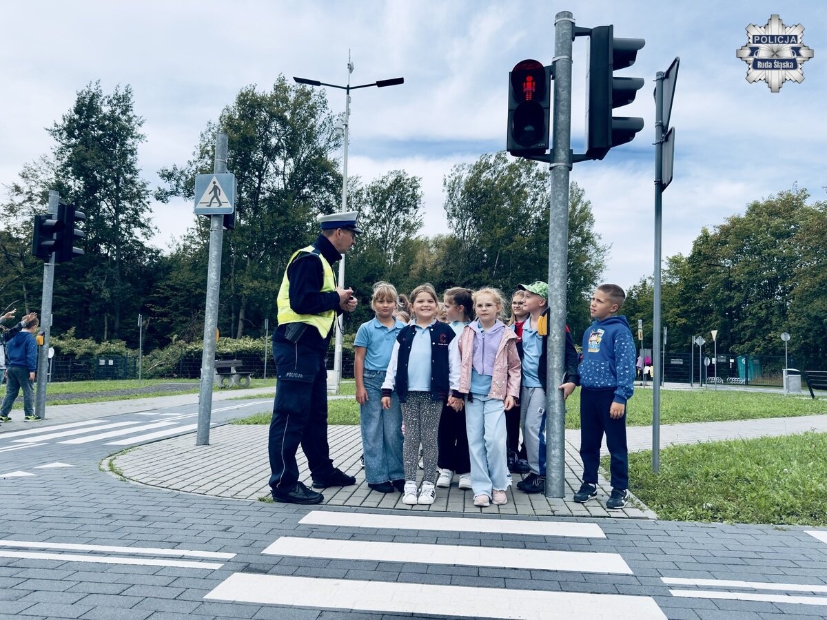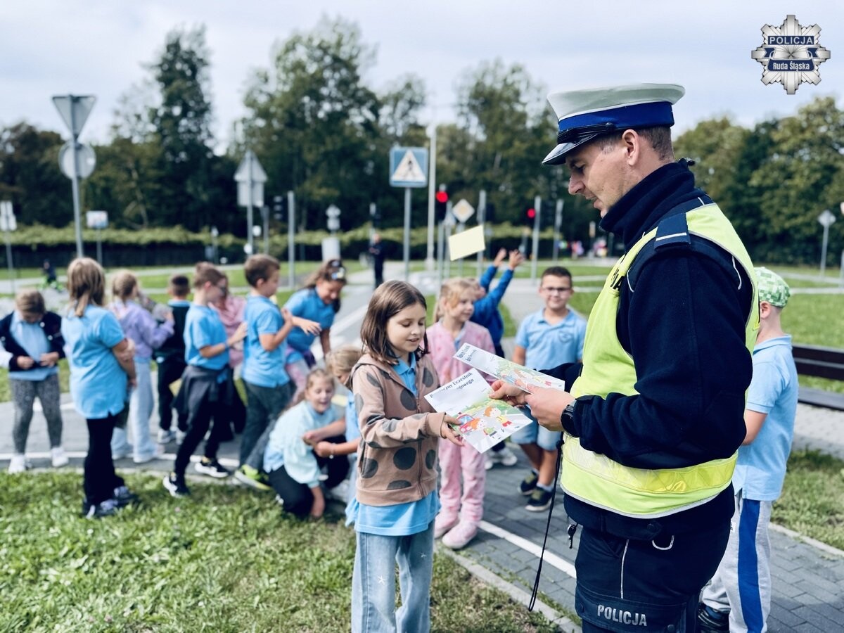 Policjanci z Rudy Śląskiej przeprowadzili zajęcia dla dzieci z zasad ruchu drogowego. Uczniowie ćwiczyli przechodzenie przez pasy, reagowanie w sytuacjach zagrożenia i zasady bezpieczeństwa.