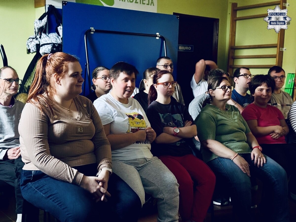 Rudzki profilaktyk i dzielnicowy z Komendy Miejskiej Policji w Rudzie Śląskiej zorganizowali spotkanie z podopiecznymi Stowarzyszenia Rodzin Osób Niepełnosprawnych „Nadzieja”. Celem spotkania było podniesienie świadomości o bezpieczeństwie w życiu codziennym i omówienie zagrożeń, z którymi możemy spotkać się w różnych sytuacjach.