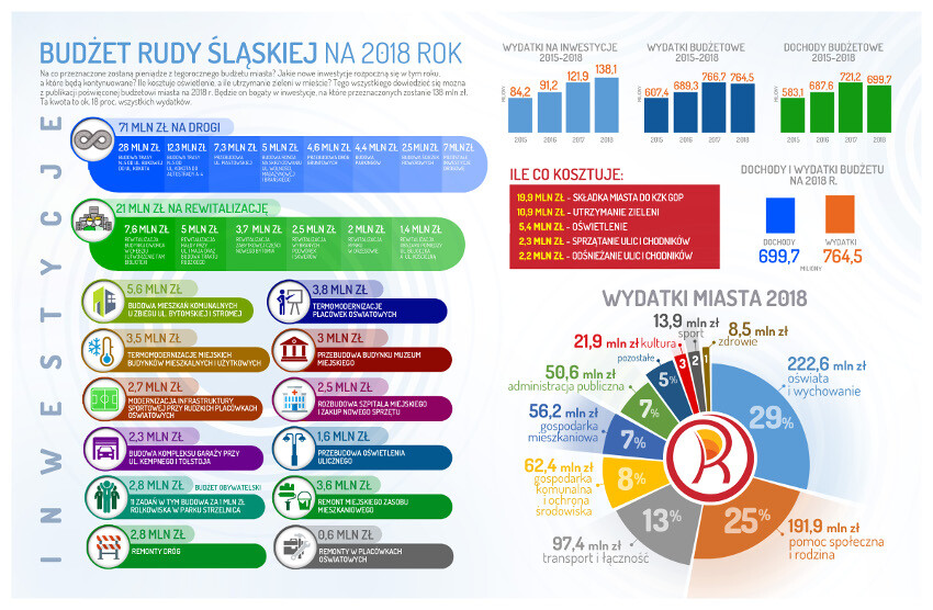 Ile kosztuje oświetlenie, a ile utrzymanie zieleni w mieście? Tego wszystkiego dowiedzieć się można z publikacji poświęconej budżetowi miasta na 2018 r.